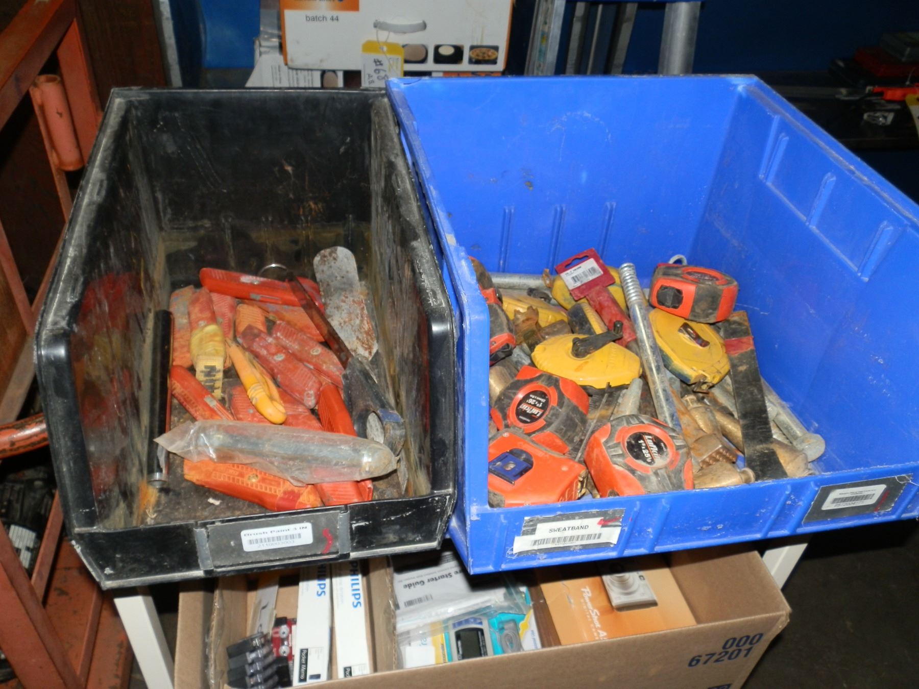 you get, knives, tape measures, saw, weights and punches and chalk lines....used