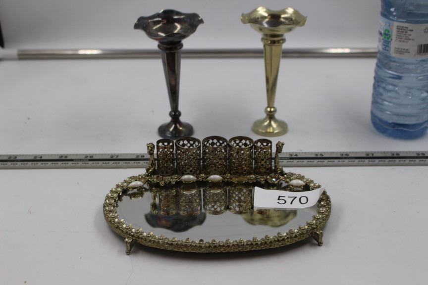 2 Birks Vases and Vintage Vanity Lipstick Holder