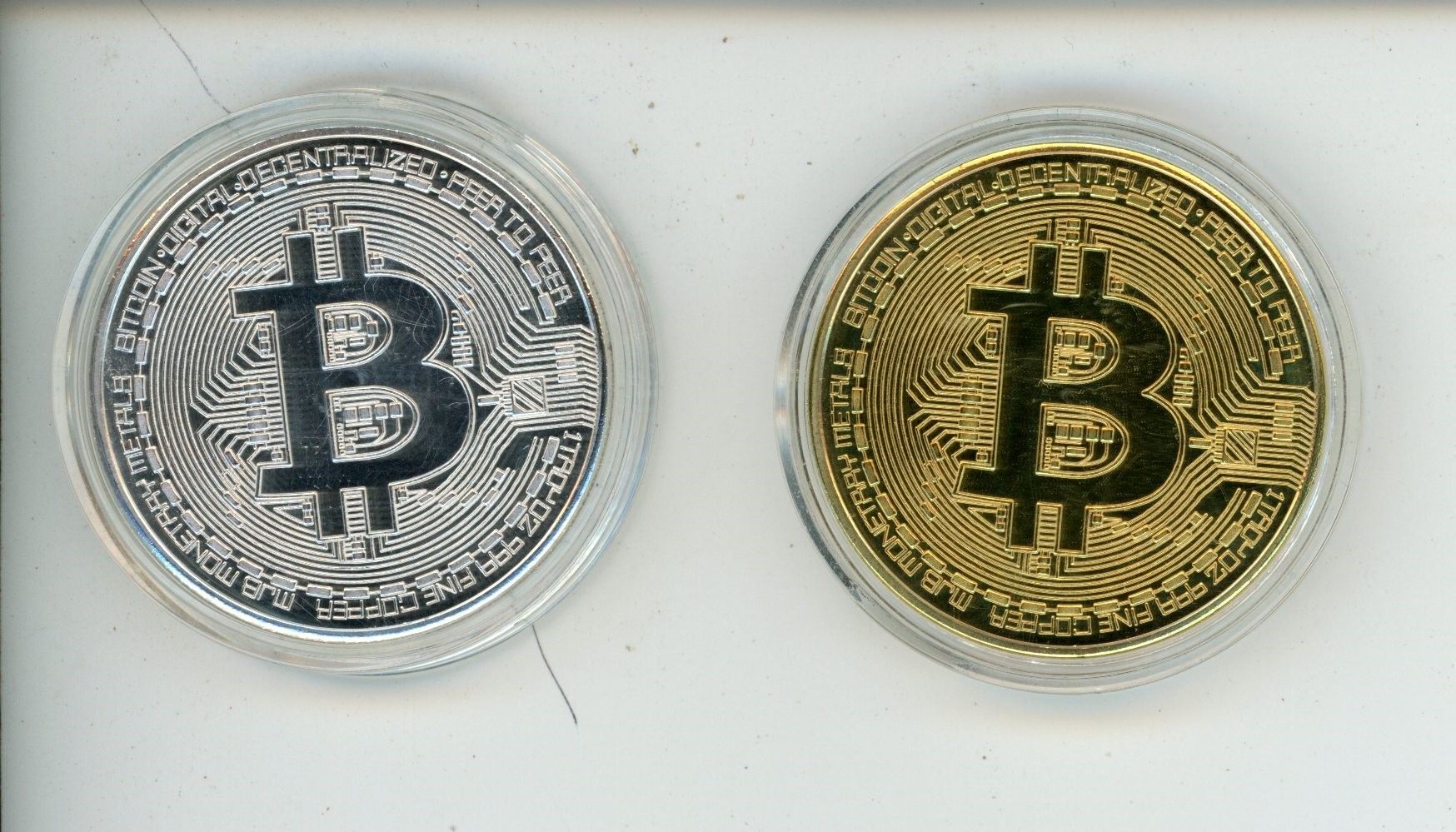2 Bitcoin Coins - 1 Silver Colour, 1 Gold Colour