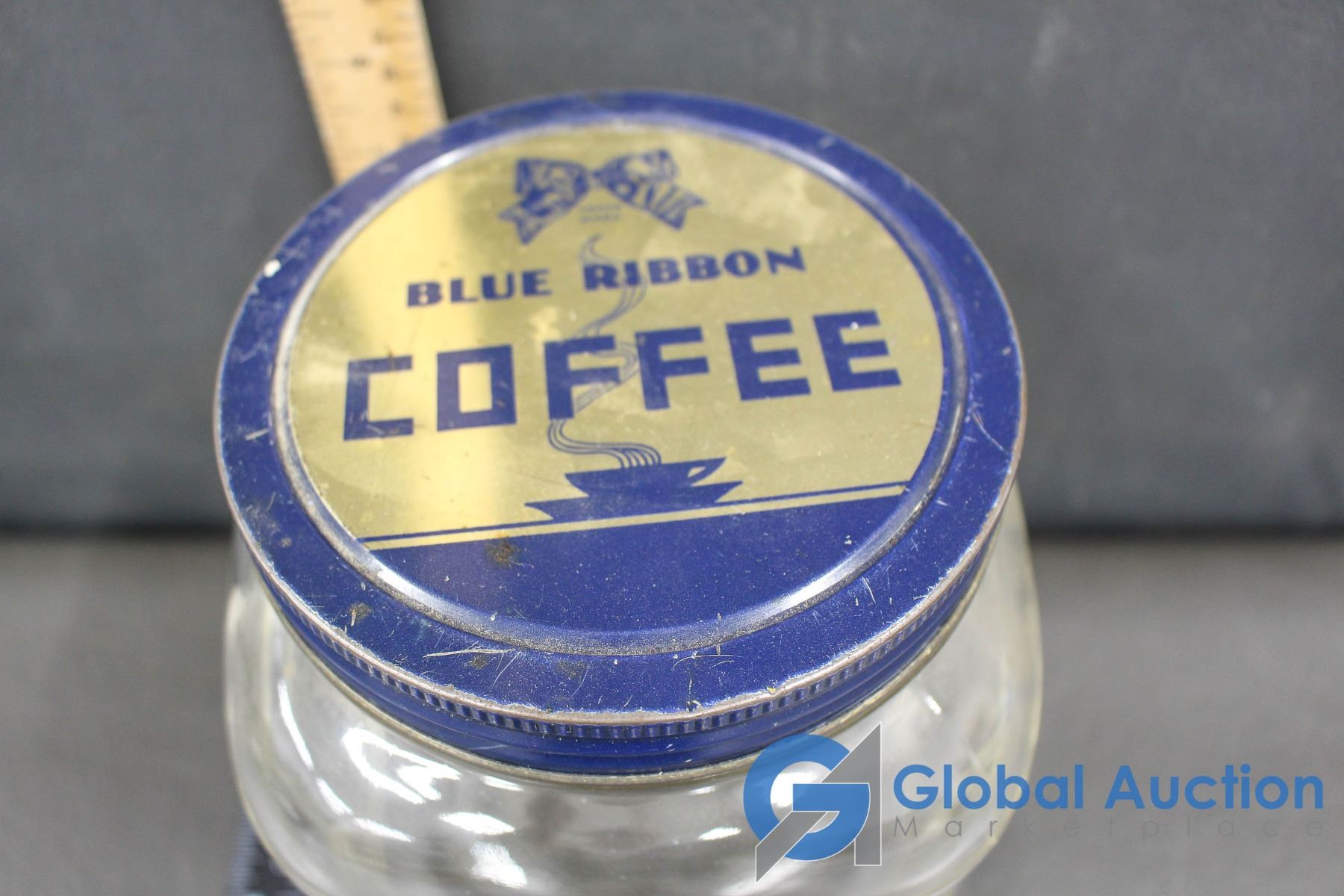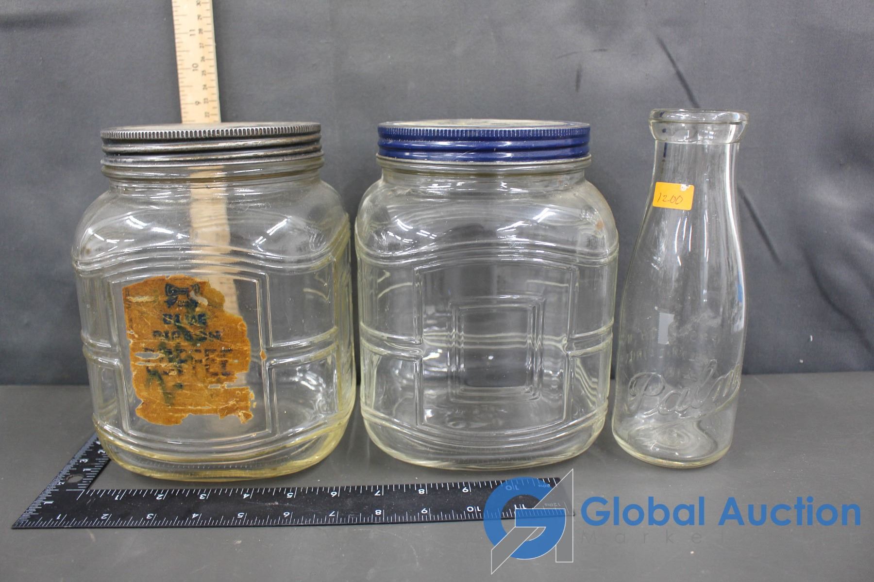 (2) Blue Ribbon Coffee Jars & Glass Milk Bottle