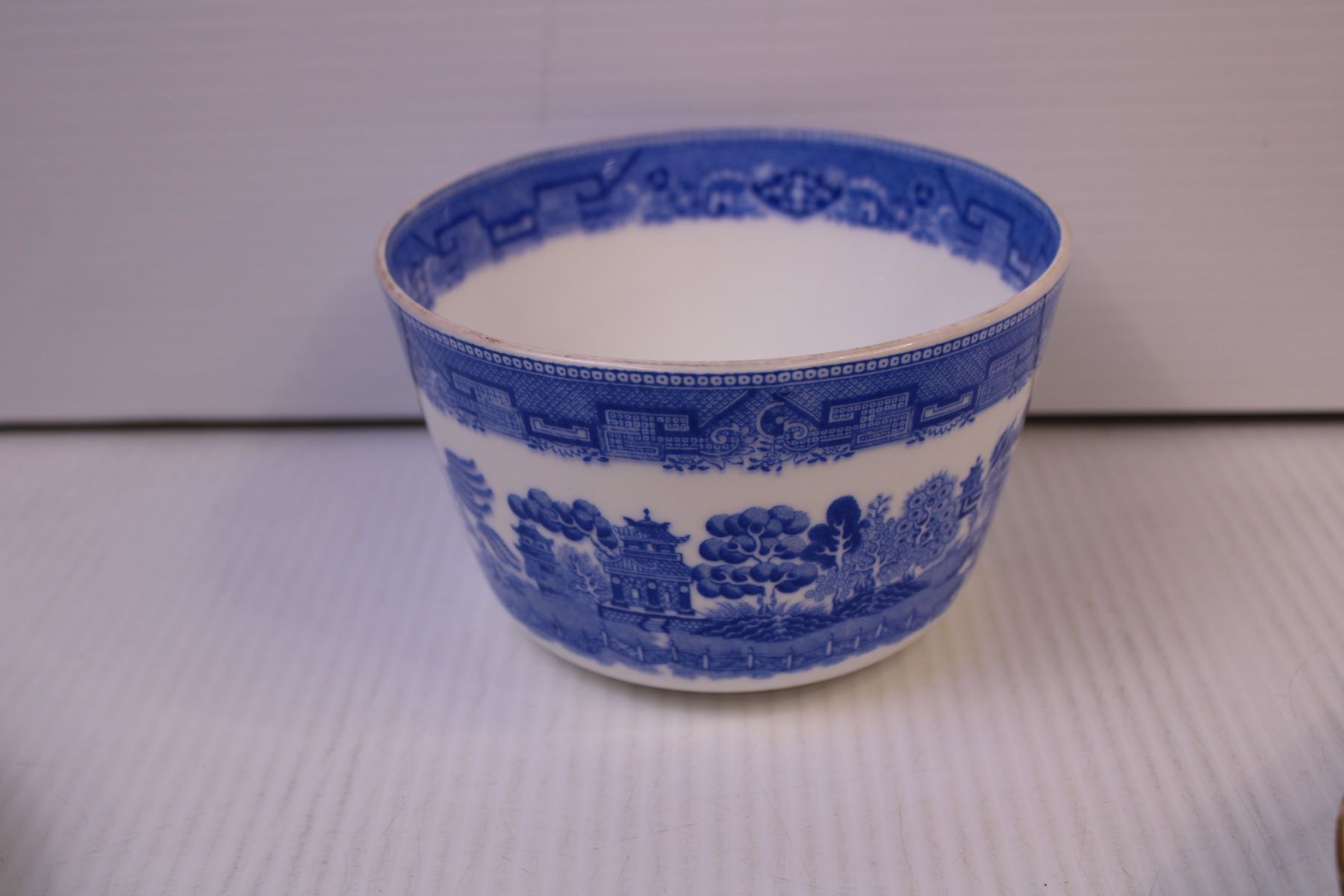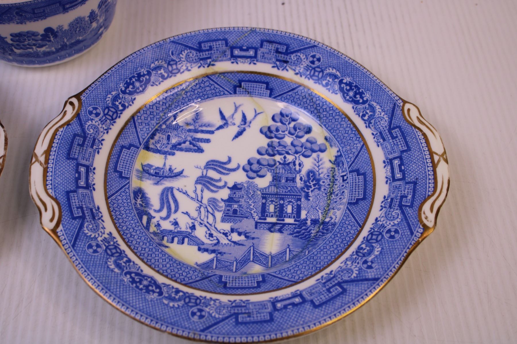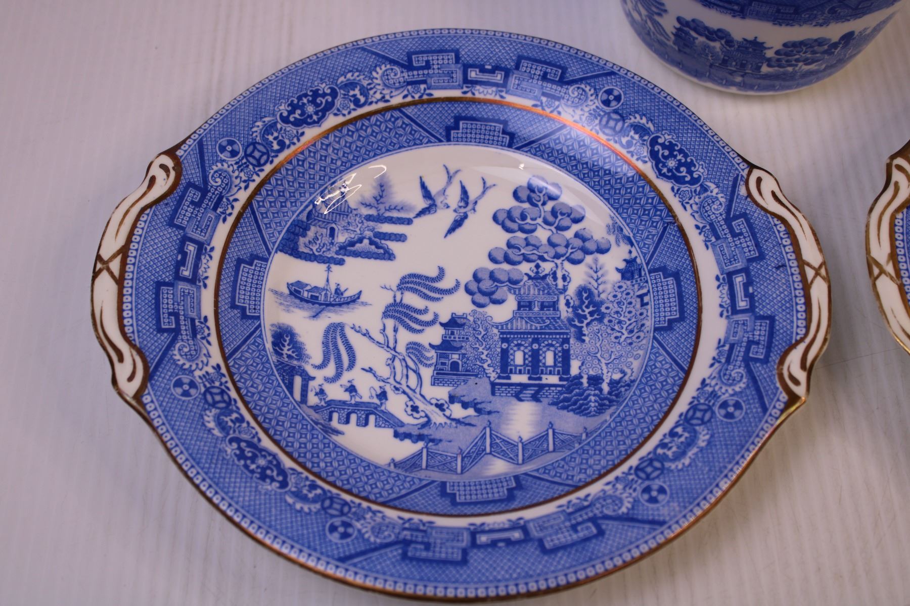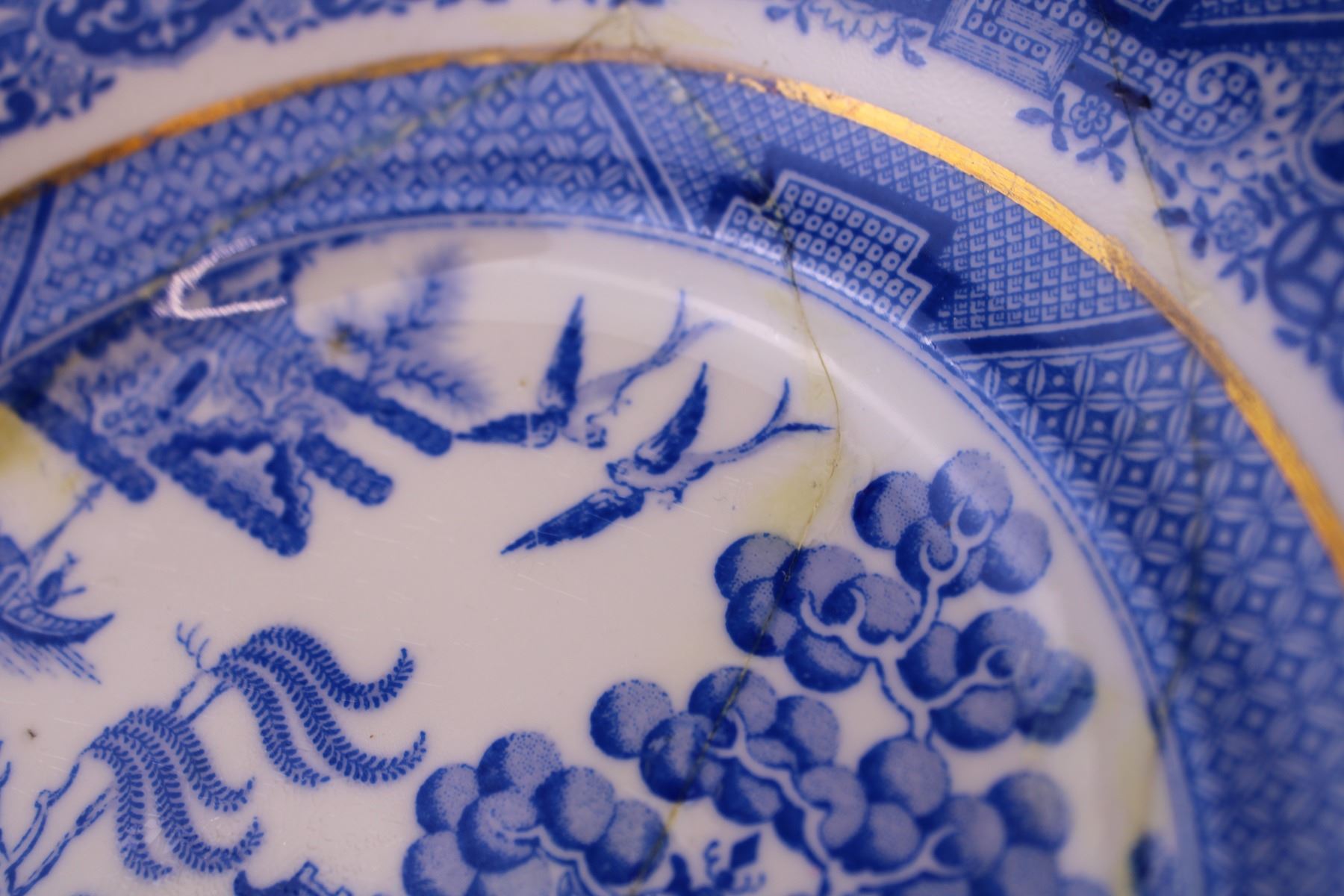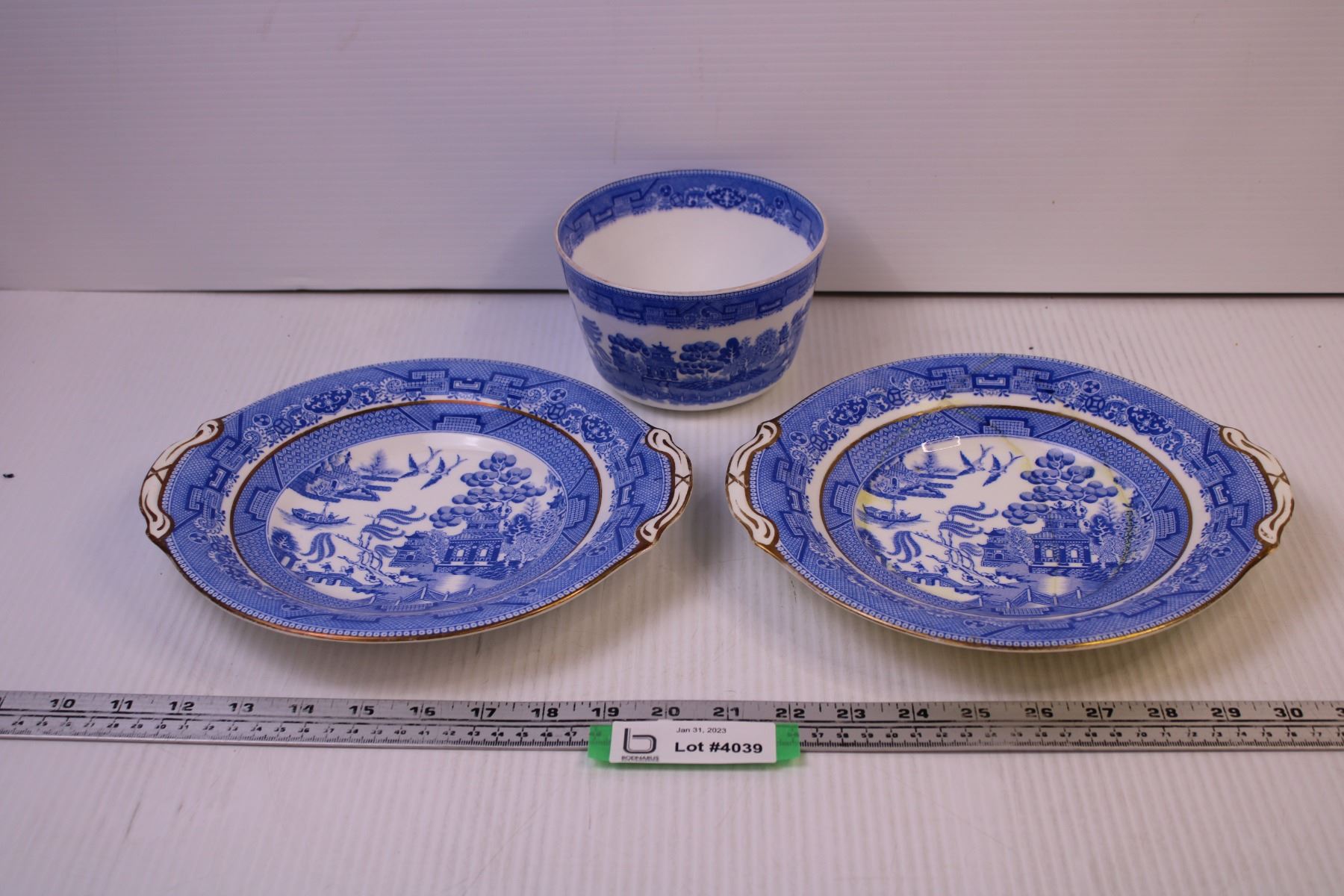 (2) Blue Willow Serving Plates (1 Repaired) + Blue Willow Bowl