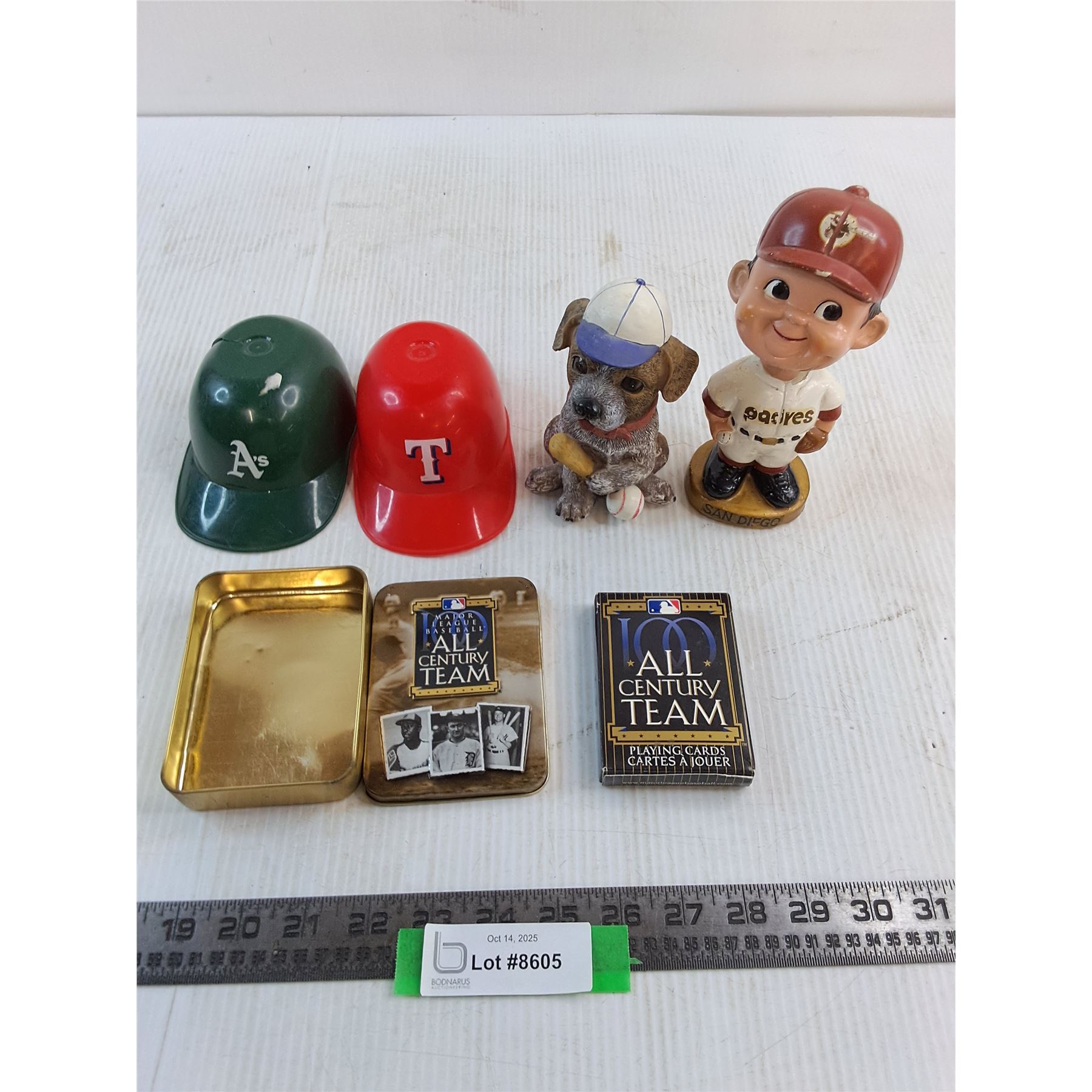 (2) Bobble Heads, Deck of MLB Playing Cards, Misc.