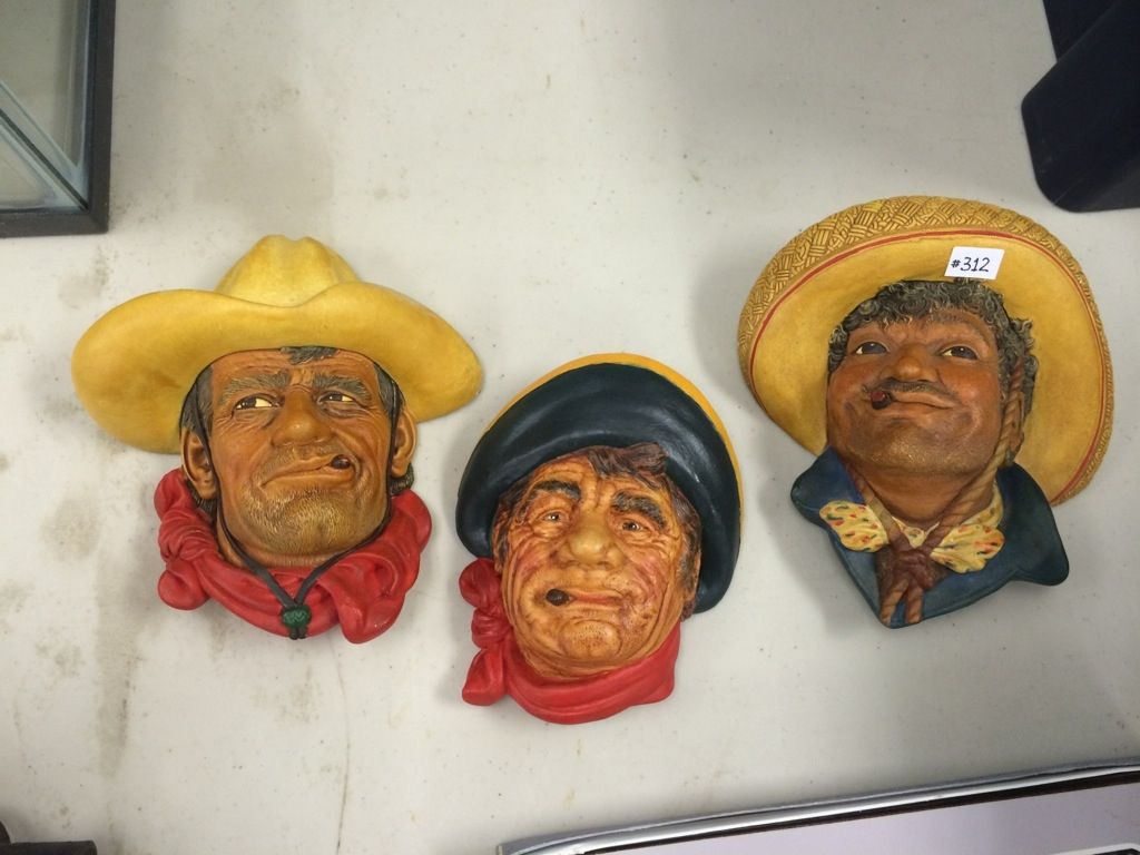 2 Bossom Chalkware and One Hand Crafted Wall Figures