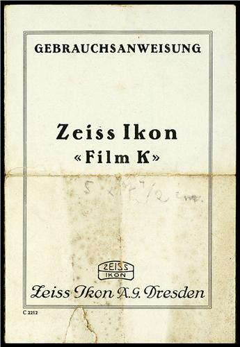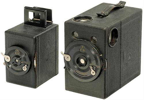 2 Box-Kameras von "Ernemann" Ernemann, Dresden. 1) "Unette", 1926, Format 22 x 33 mm auf unperforiertem Kinofilm, Version mit 3 Blenden, aber ohne Trageösen (2-/2-) - Und: 2) "Film K", 1926, Format 4 x 6,5 cm auf Rollfilm, Automat-Verschluß, mit seltener Anleitung. (3+/2-)