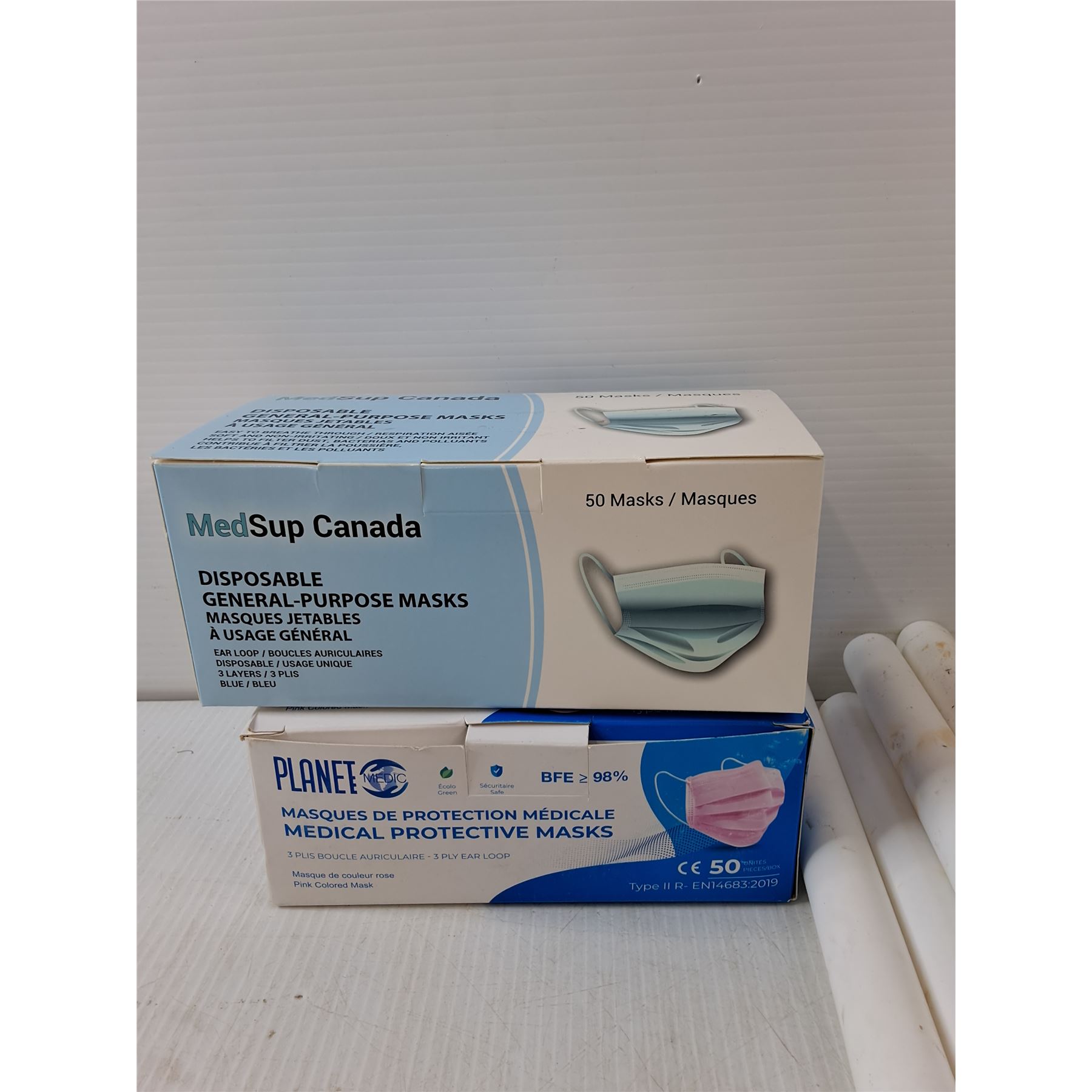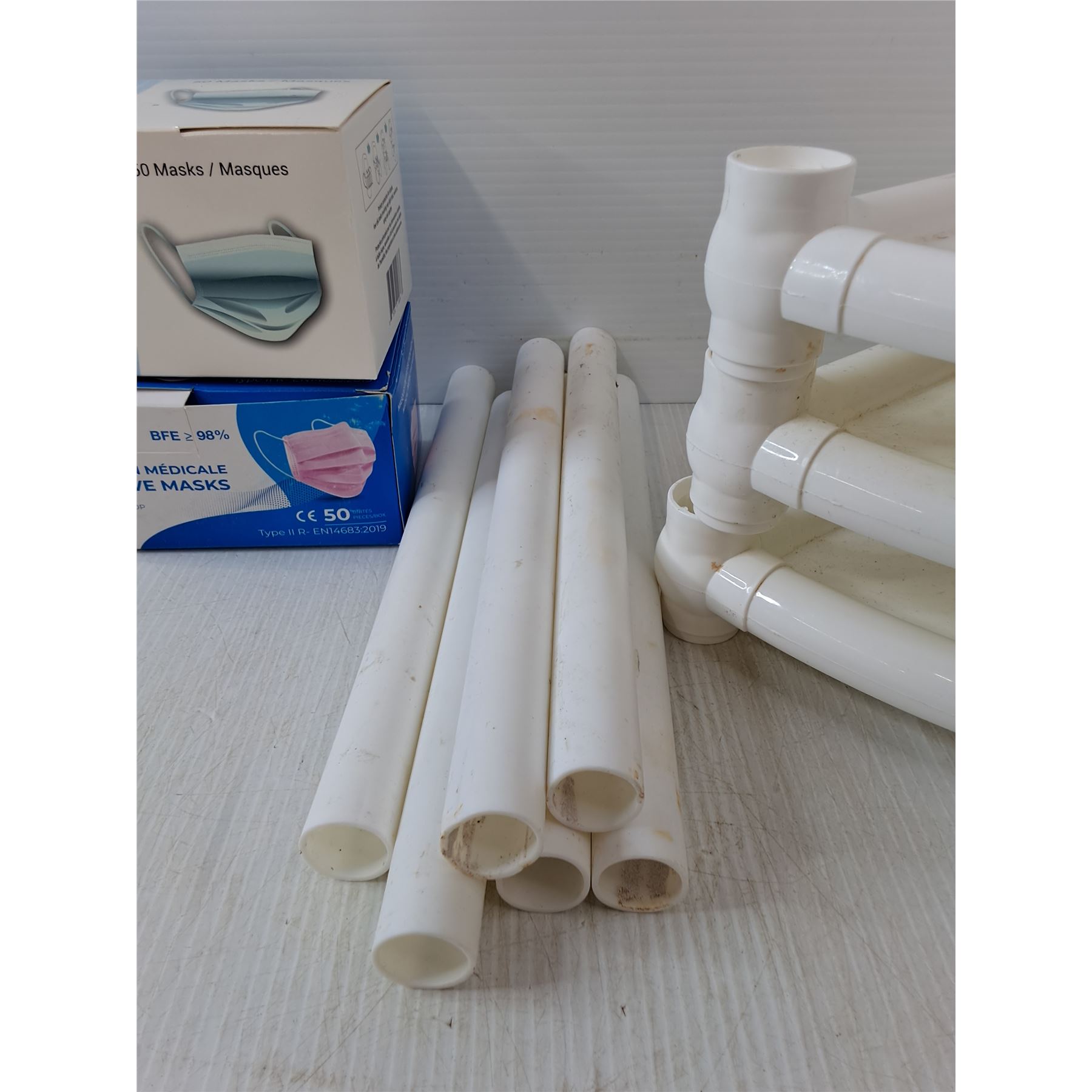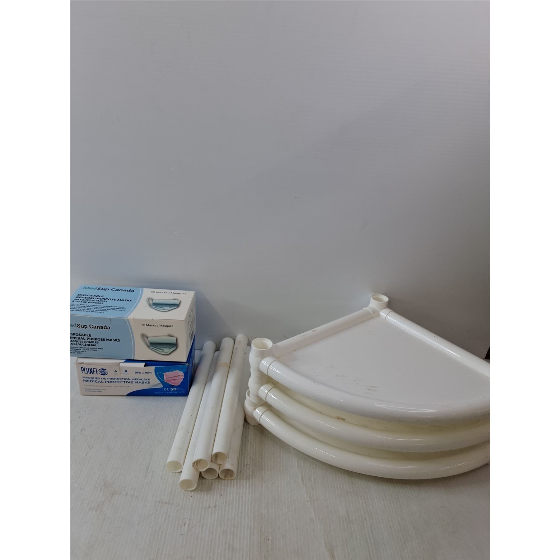 (2) Boxes Of Masks & White Plastic Corner Shelf