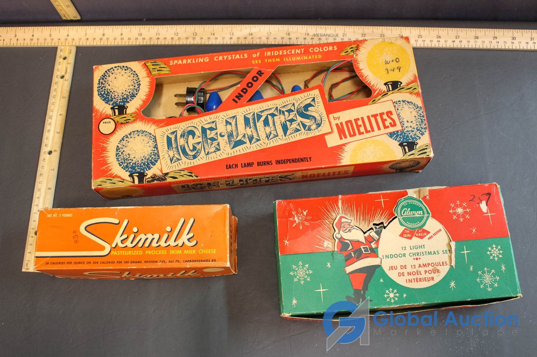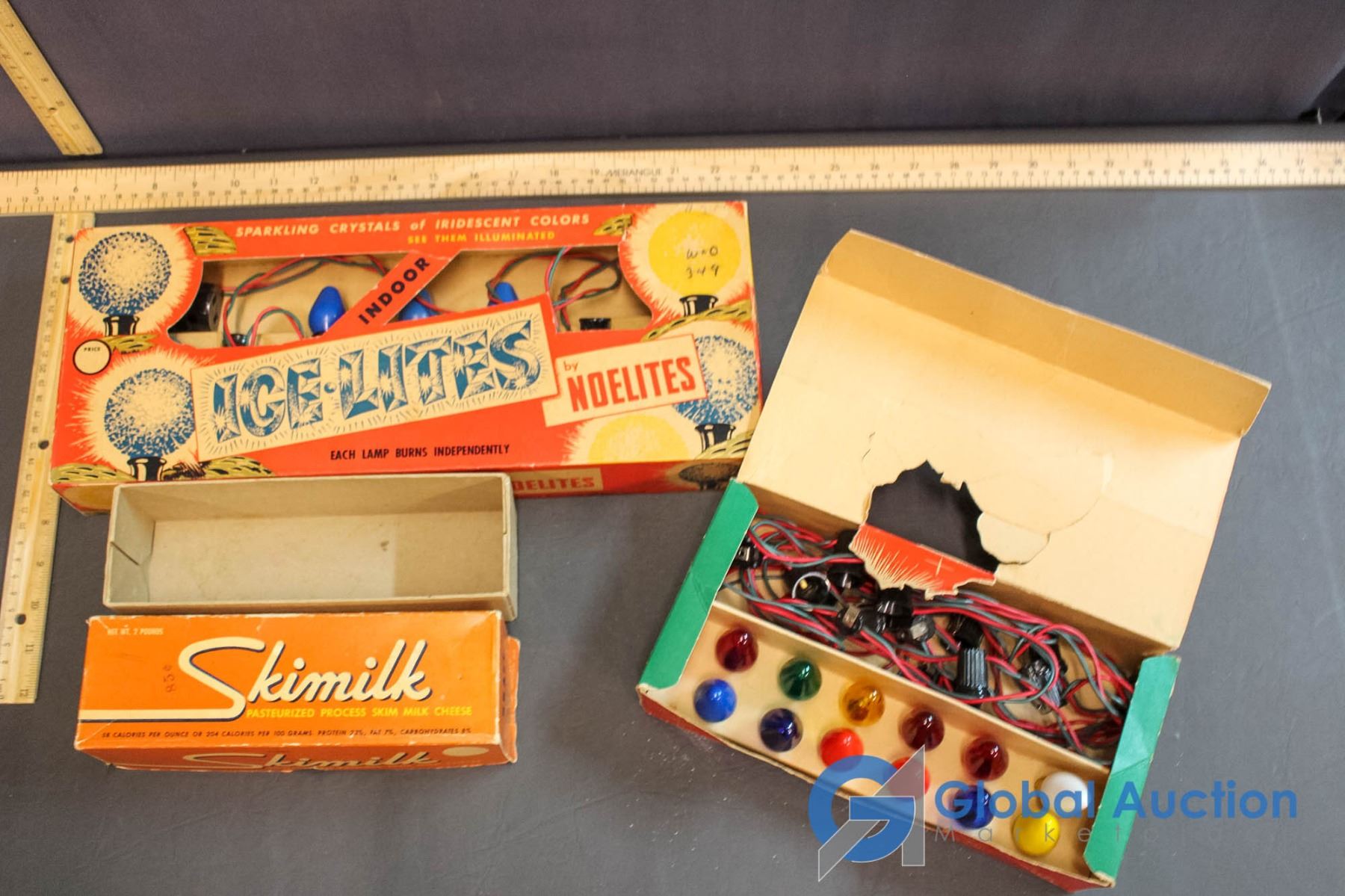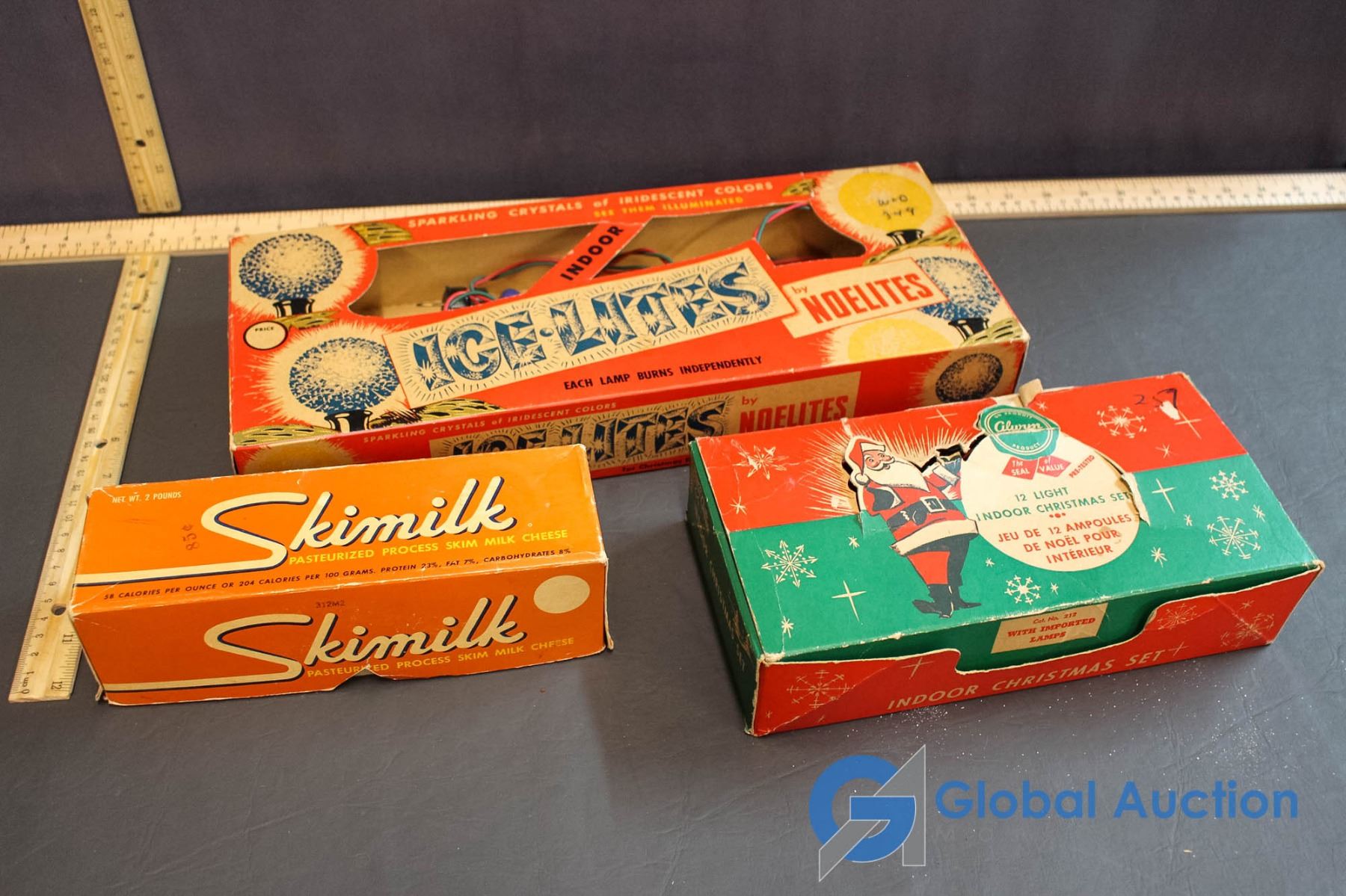 (2) Boxes Vintage Christmas Lights, Kraft Skimilk Cheese Box