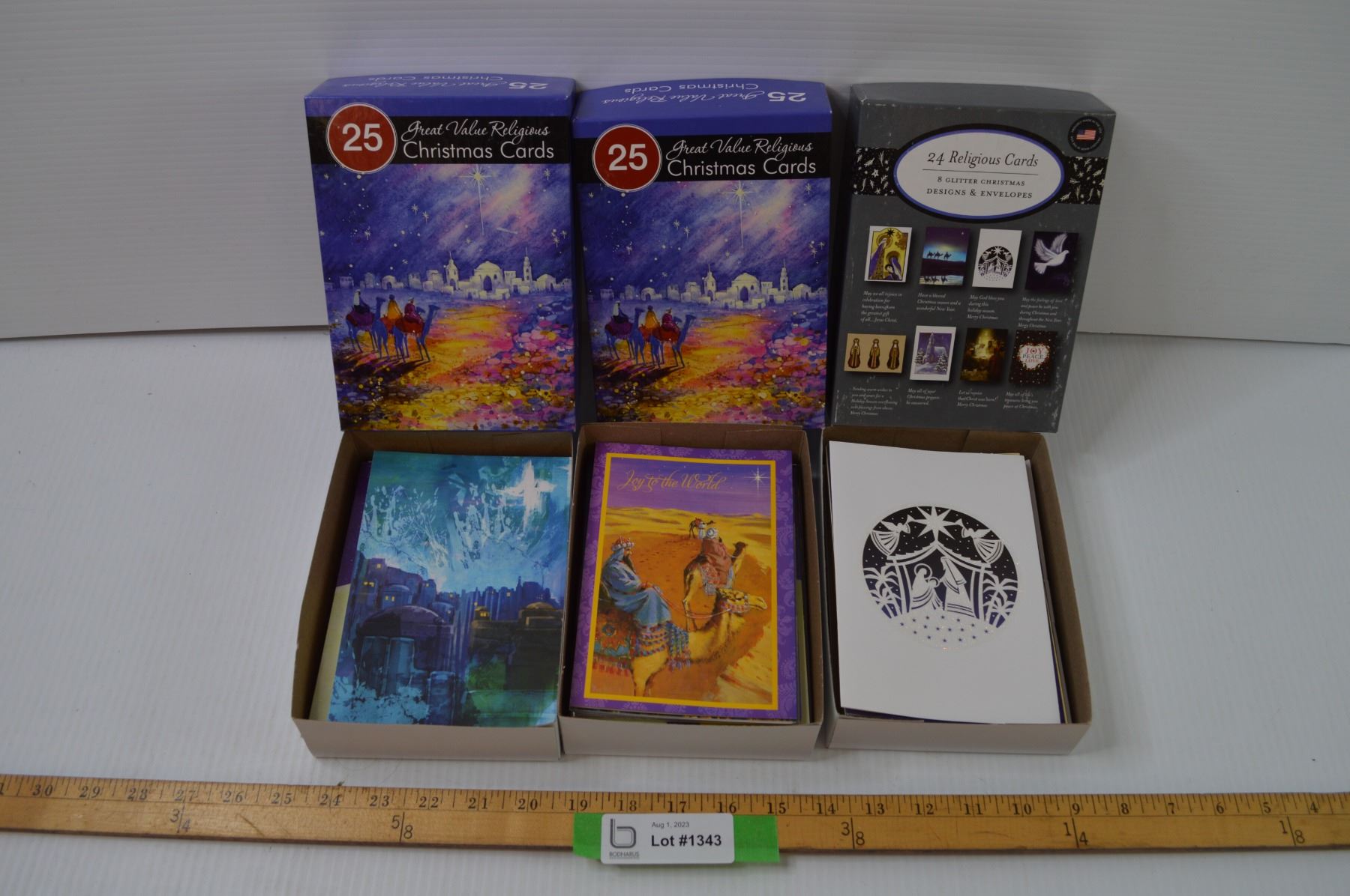 (2) Boxes of 25 Christmas Cards + Box of 24 Religious Cards