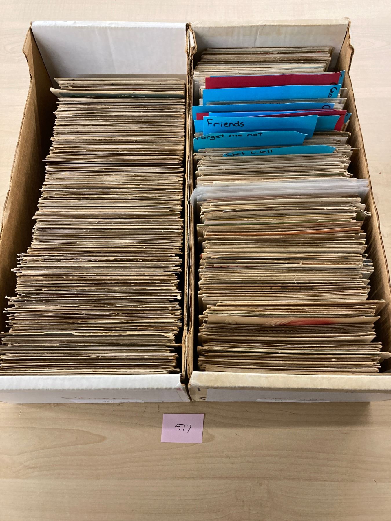 2 boxes of greetings flowers, airbrushed, good wishes, friends and more. Not all perfect condition.