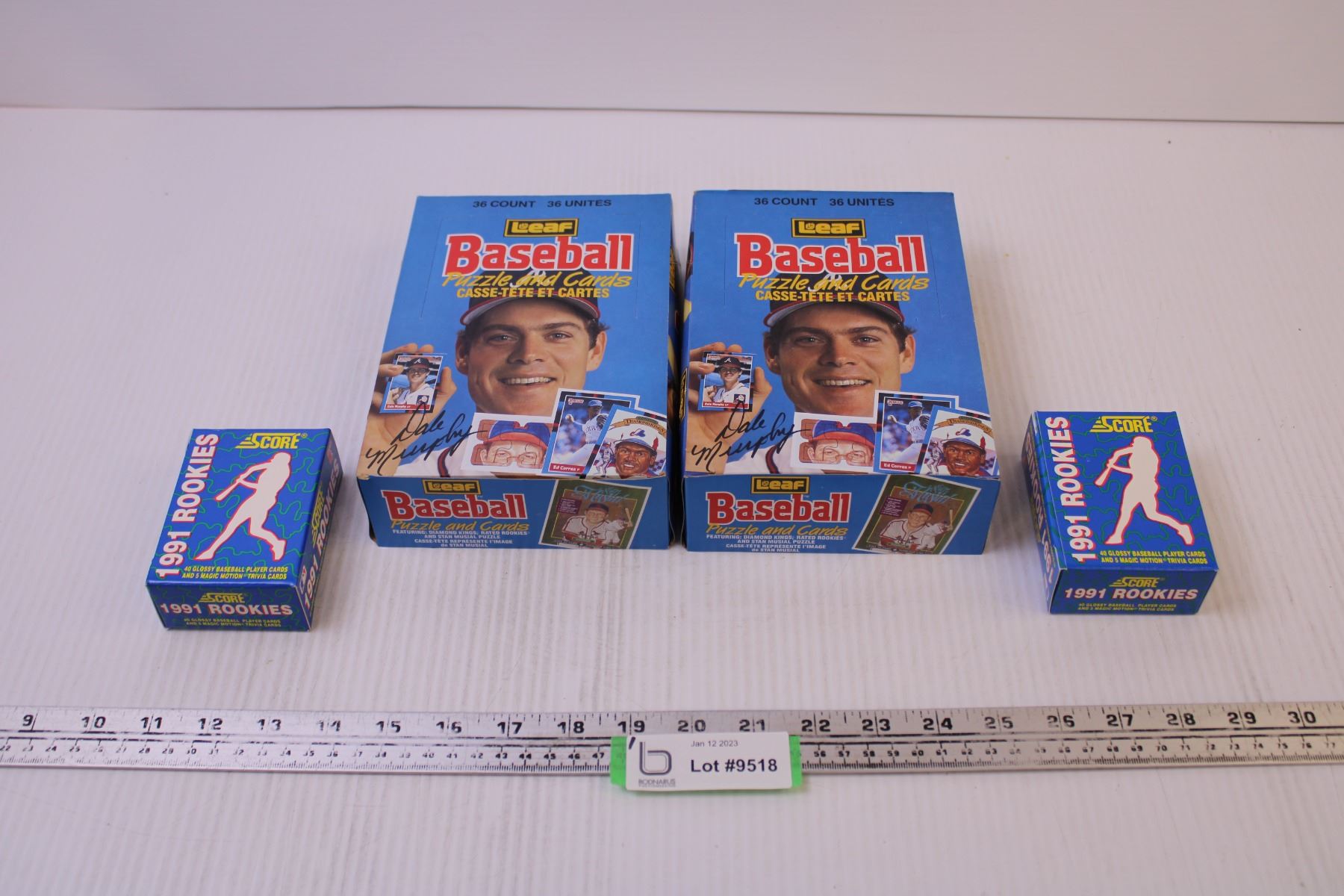 (2) Boxes of Leaf Baseball Cards (NOS) + (2) 1991 Score Baseball Rookie Cards (NOS)