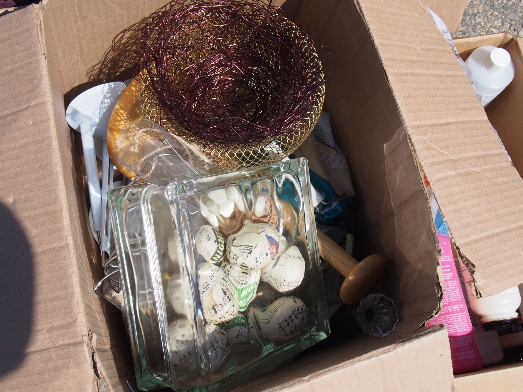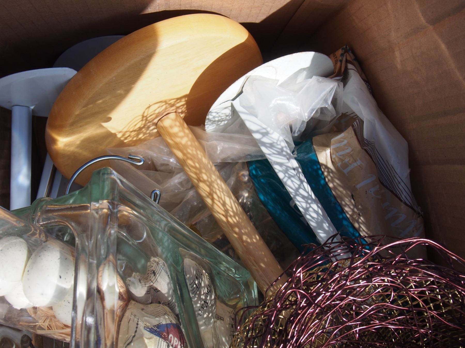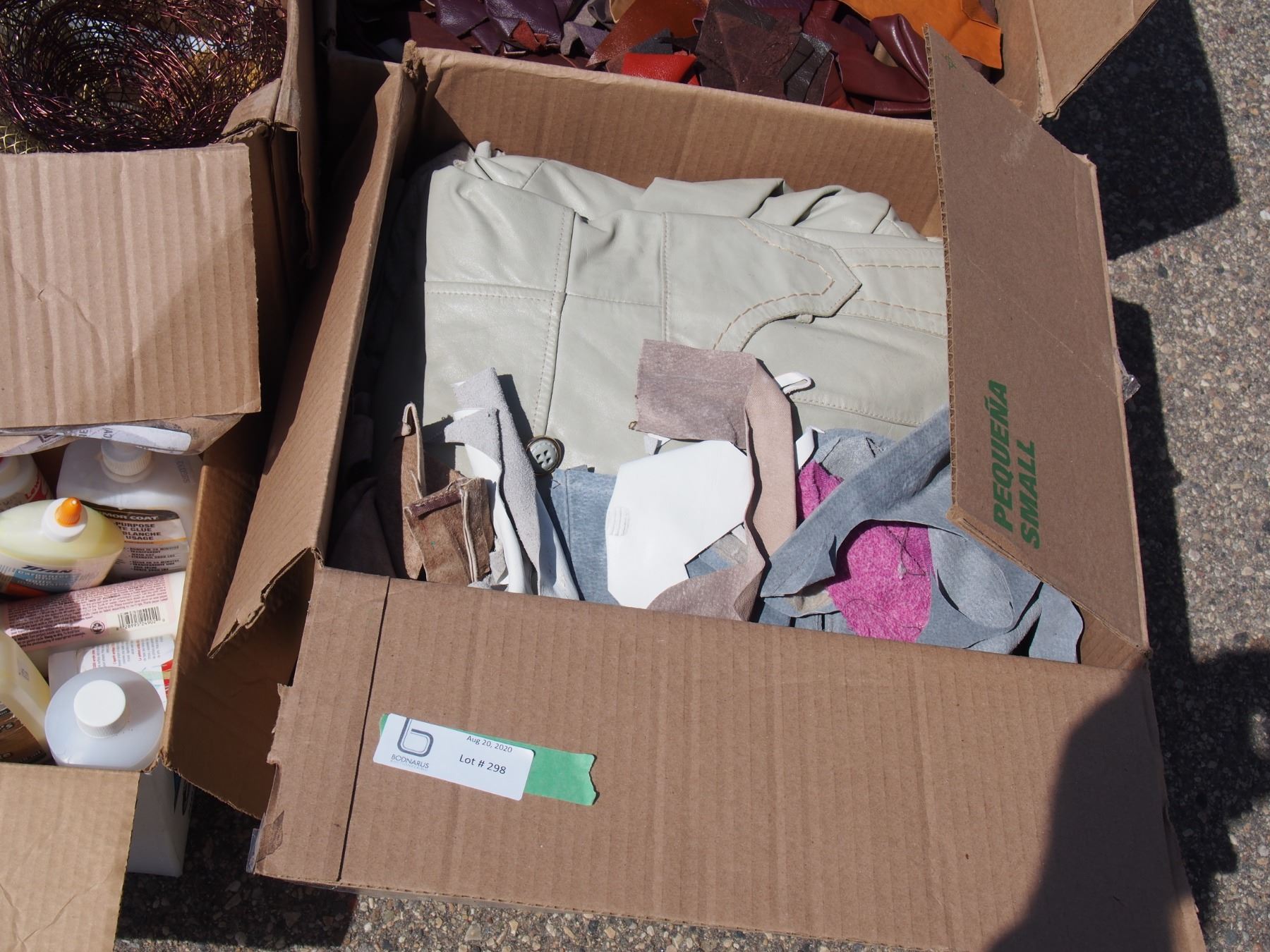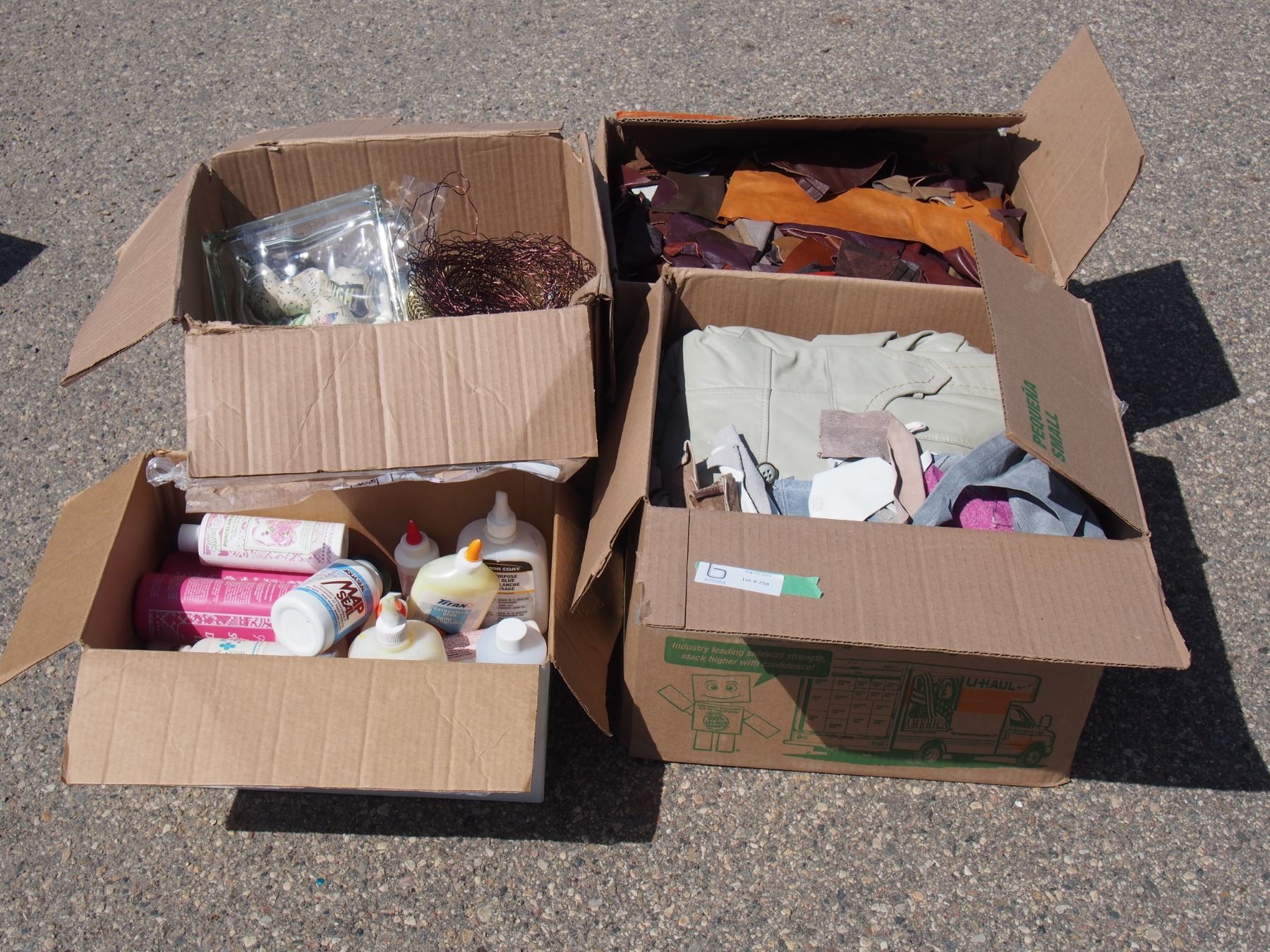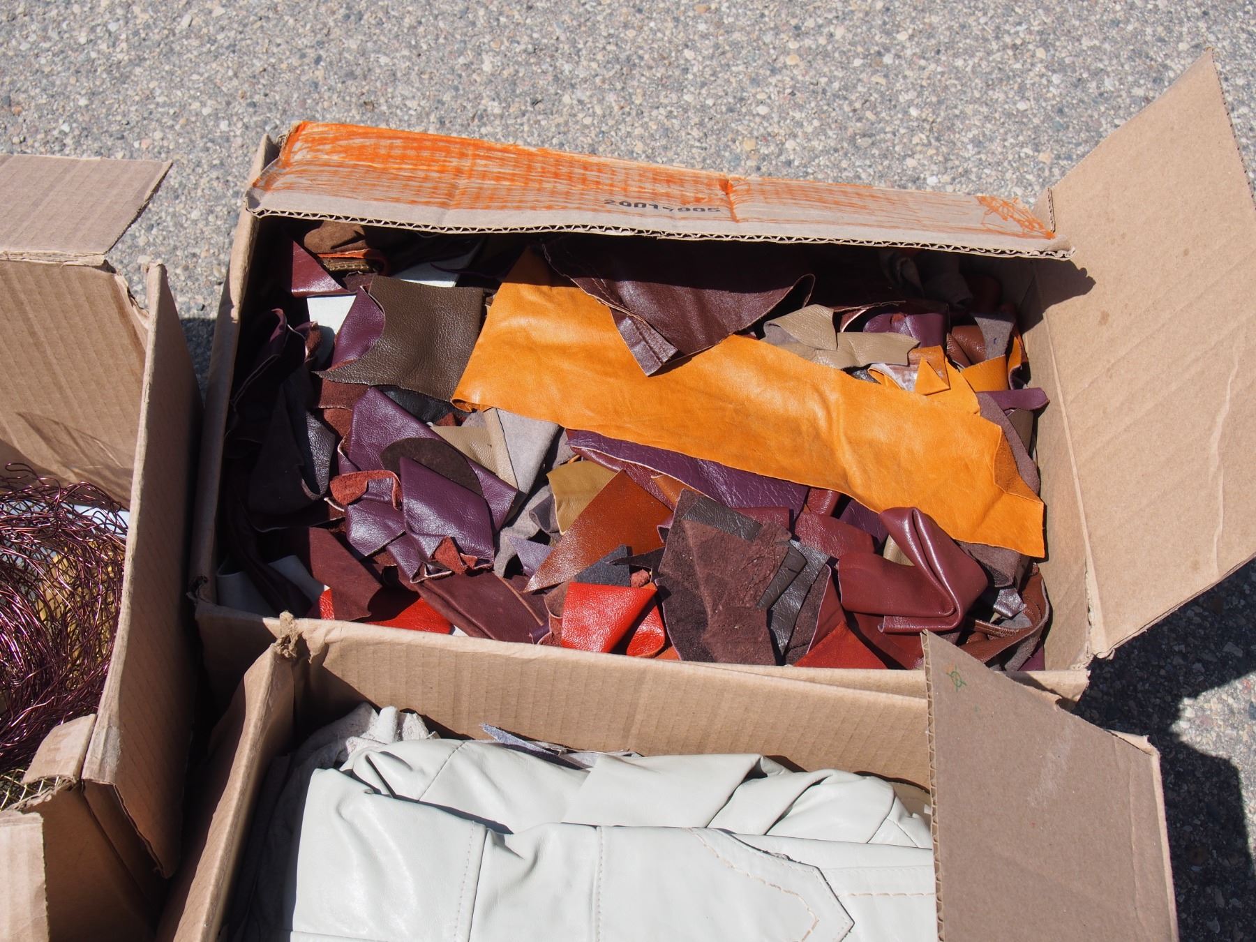 2 Boxes of Leather Material, 1 Box of Kitchenware and 1 Box of Craft Supplies