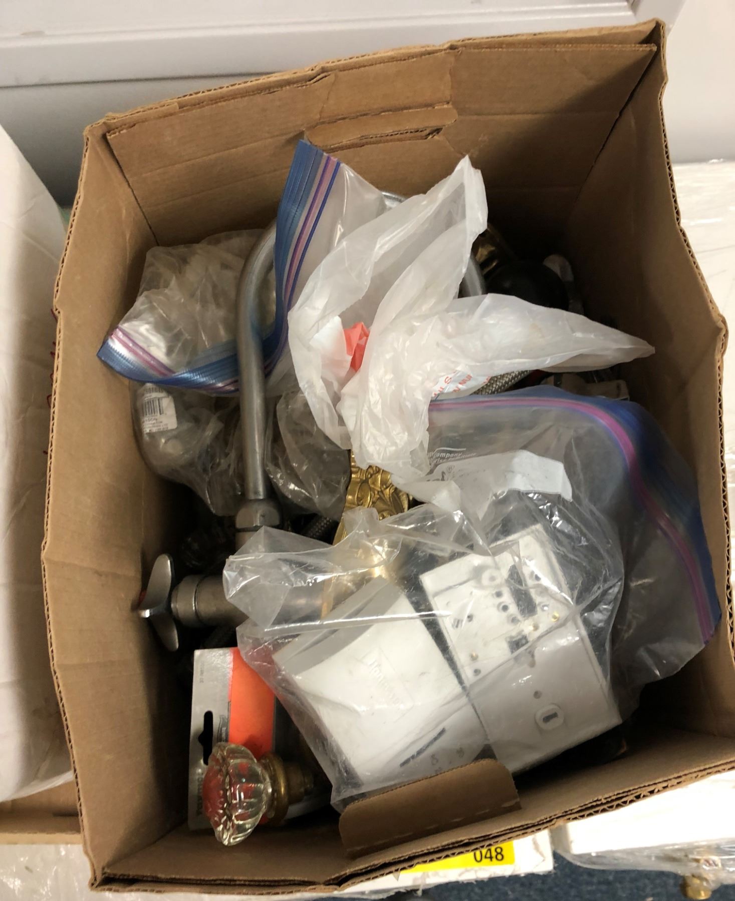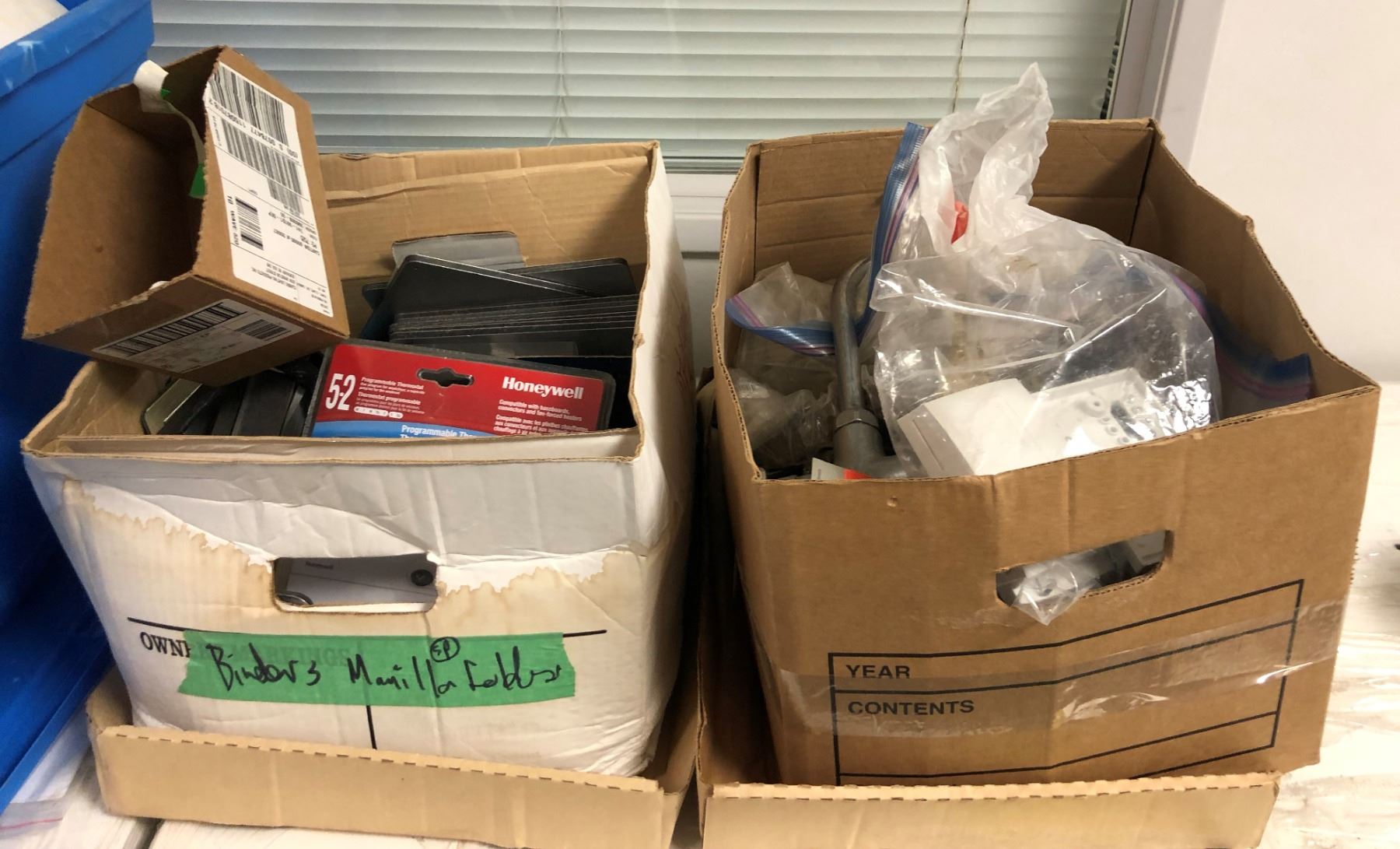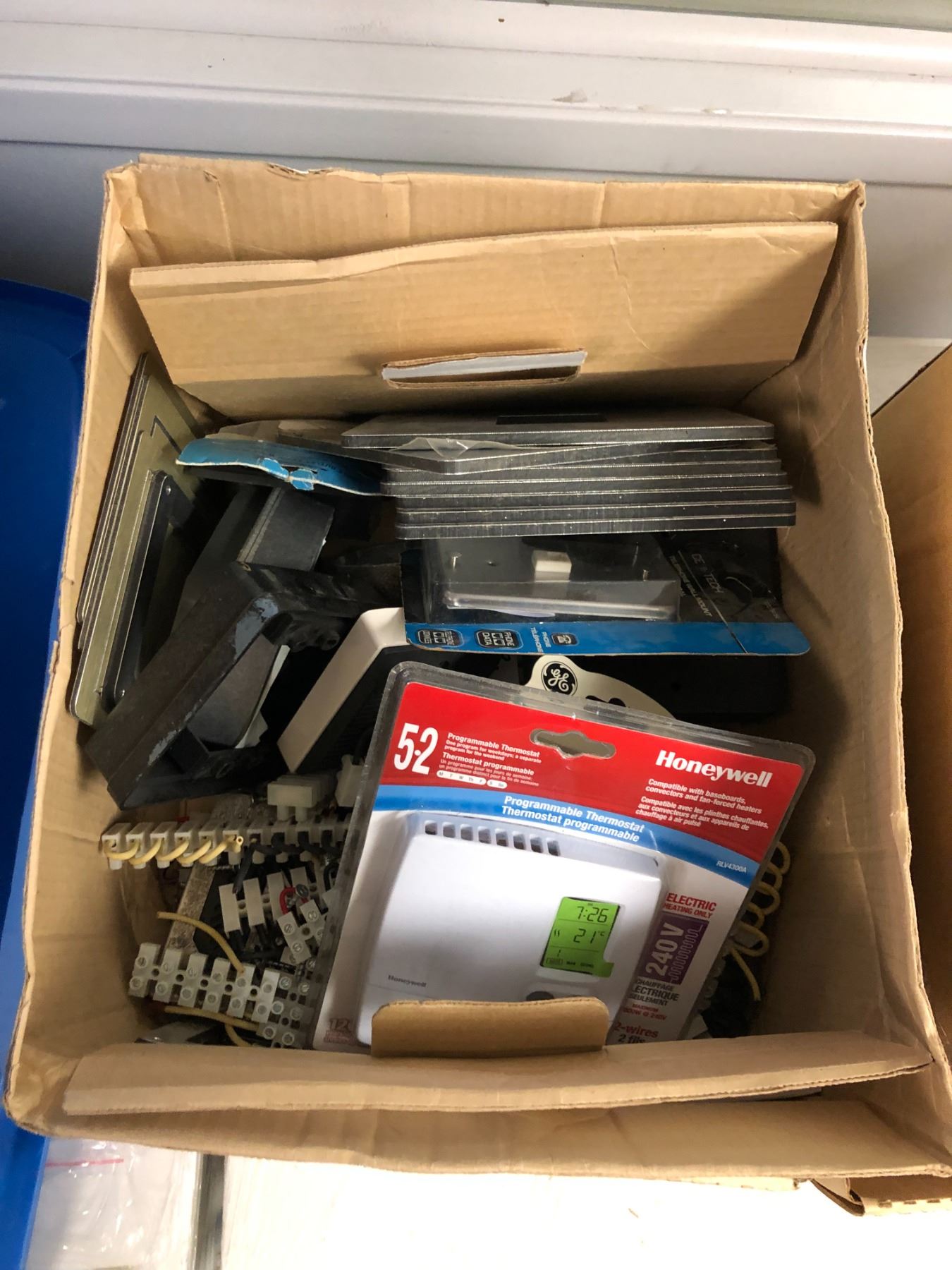 2 Boxes of Misc. Items - Thermostats/Plumbing Items/Electrial Items