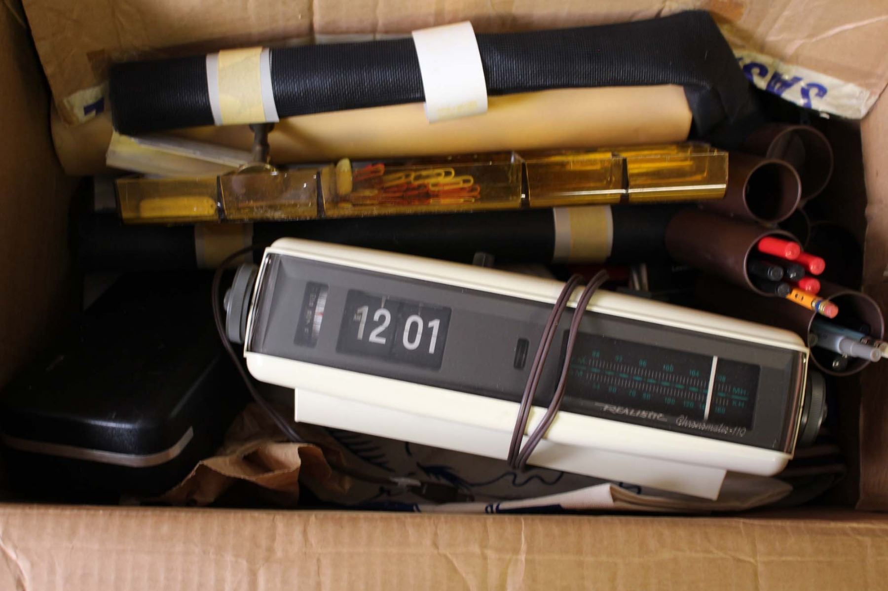 (2) Boxes of Misc (Stationary, Binders, Alarm Clock)
