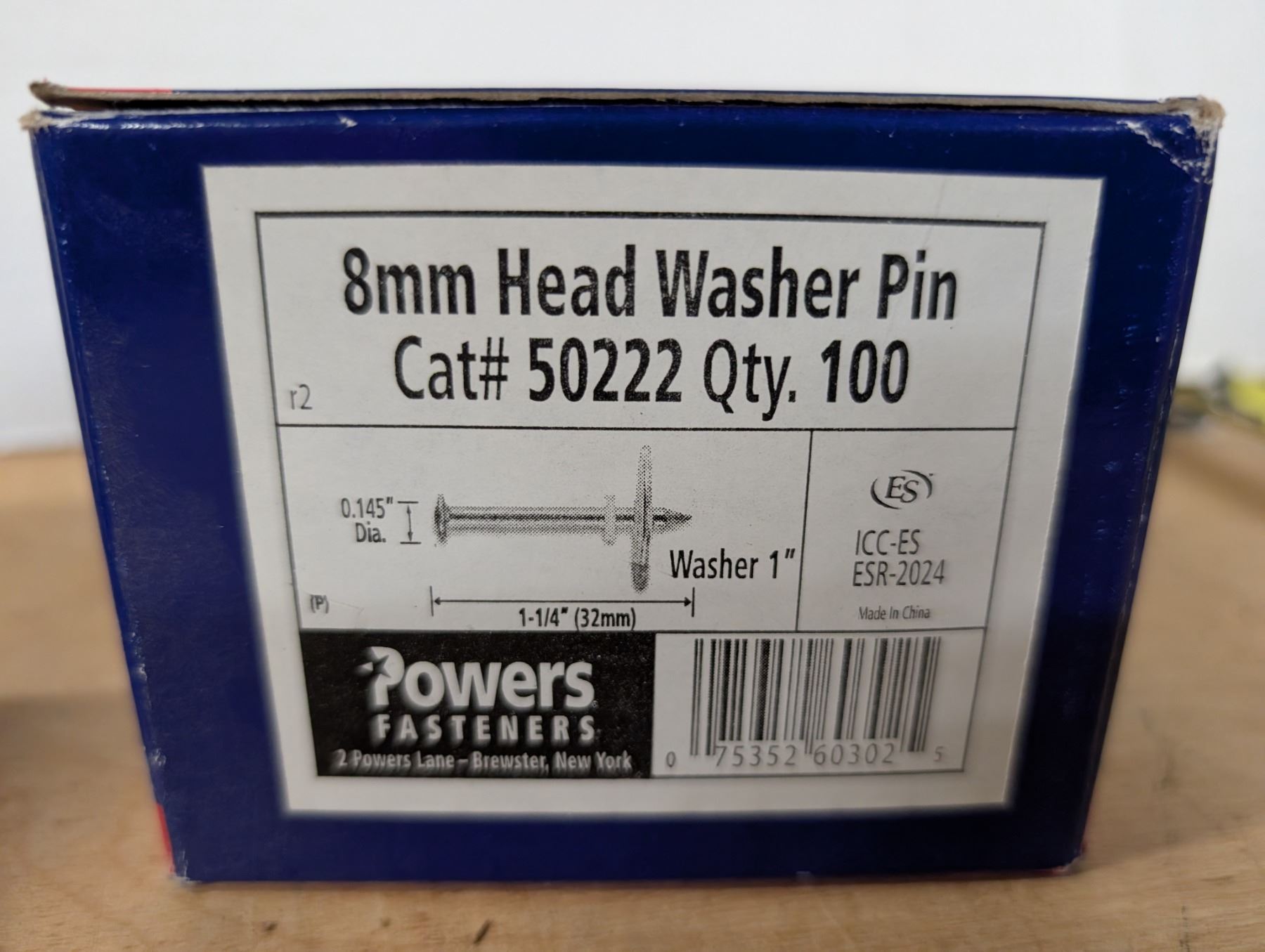 (2) Boxes of Power Fasteners 8mm Head Washer Pins
