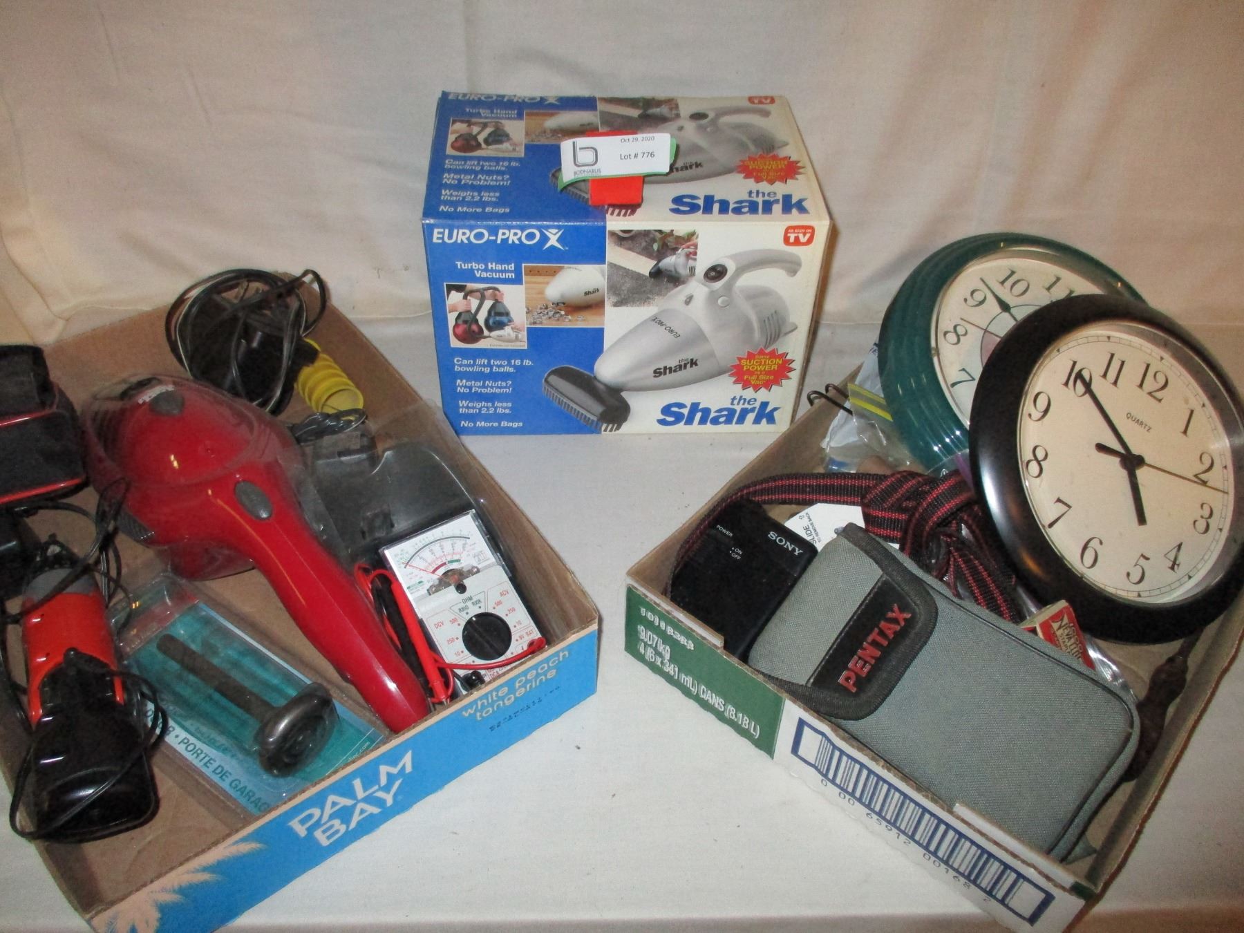 2 Boxes of Tools, Clocks and Mini Vacuum