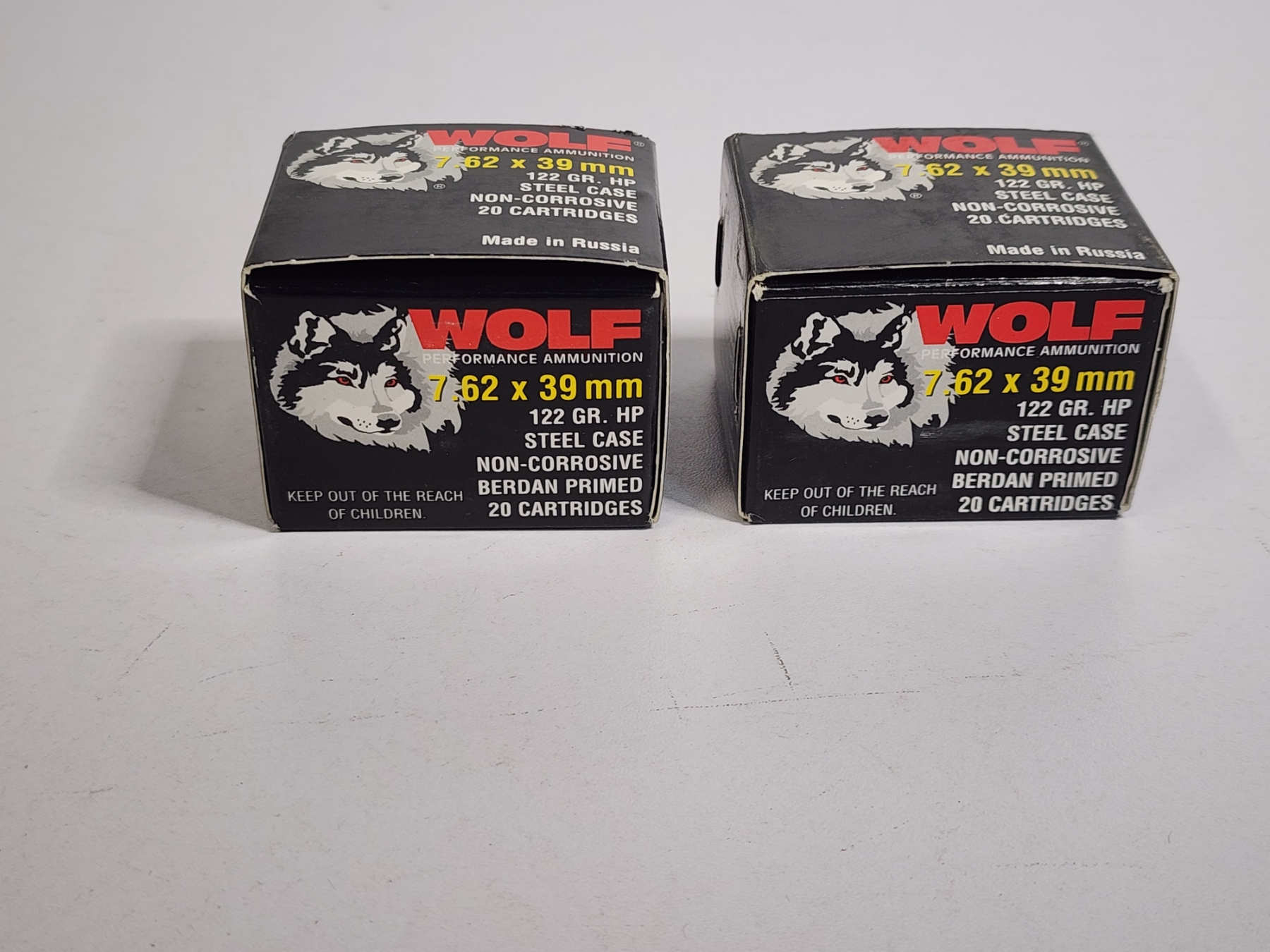 2 Boxes of Wolf 7.62x39 Ammo - One Full and One Partially Full Box