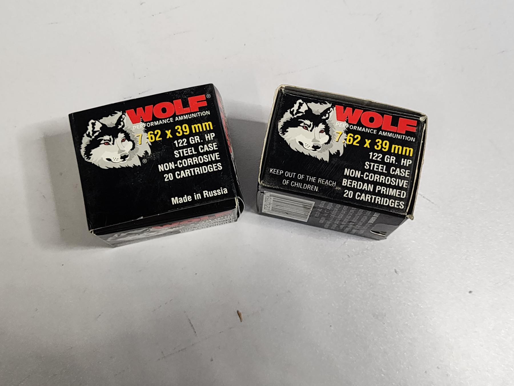 2 Boxes of Wolf 7.62x39 Ammo - One Full and One Partially Full Box