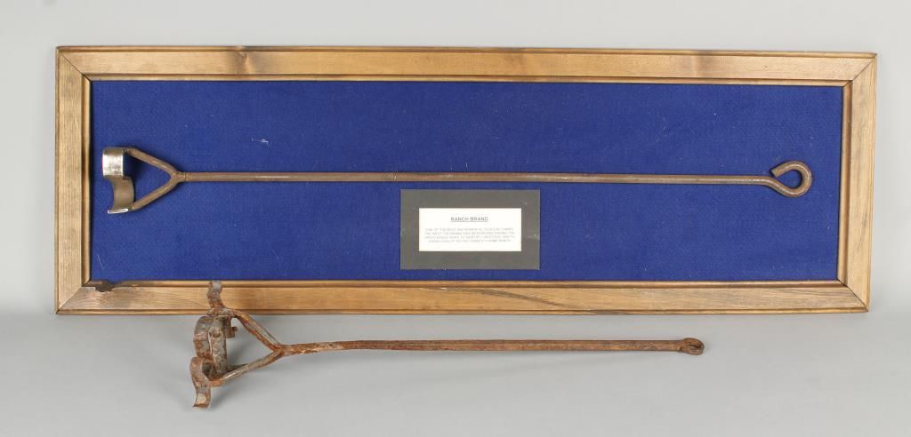 1 mounted on board ranch brand "5" and 1 other of a ranch brand in relic condition.