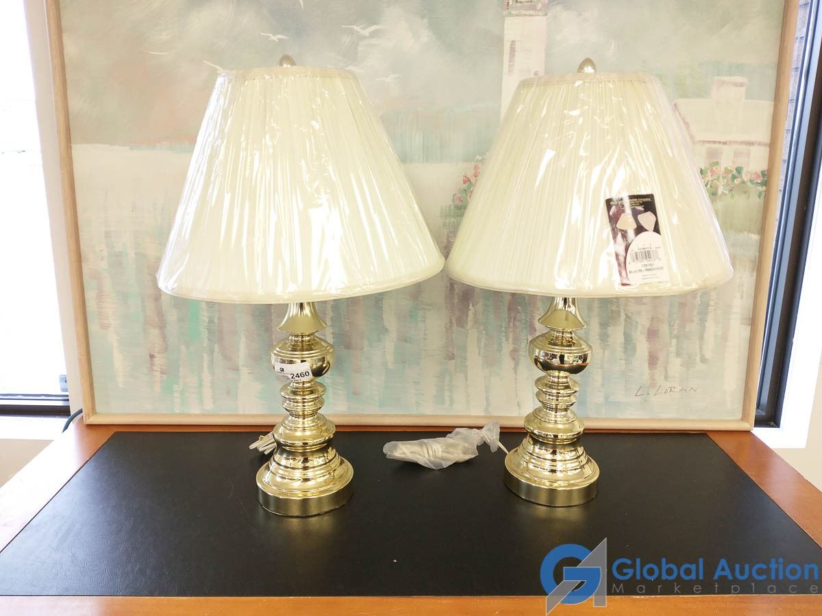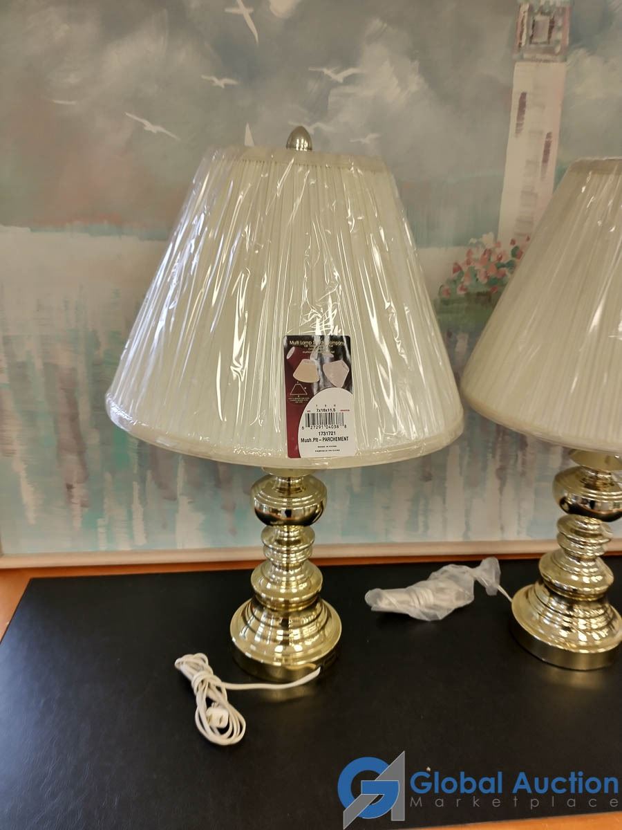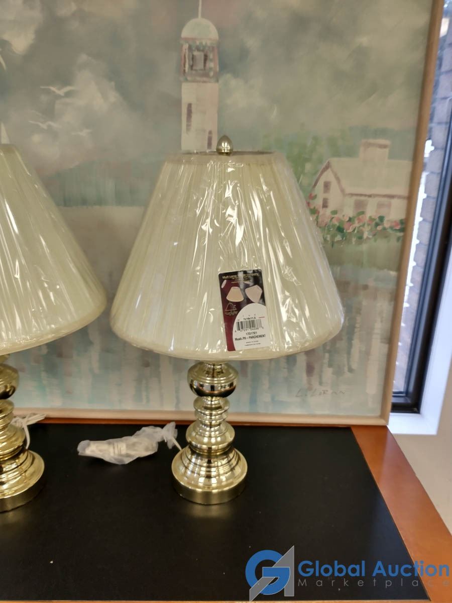 (2) Brass Table Lamps w/Shades (BID PRICE TIMES 2)