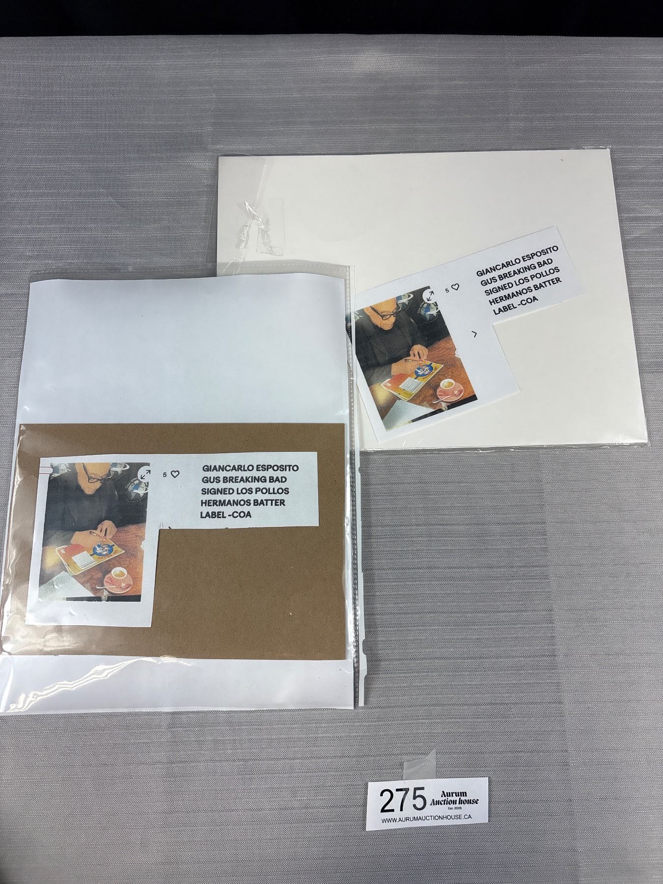 2 Breaking Bad Giancarlo Esposito Gus Signed Los Pollos Fry Batter Sheets