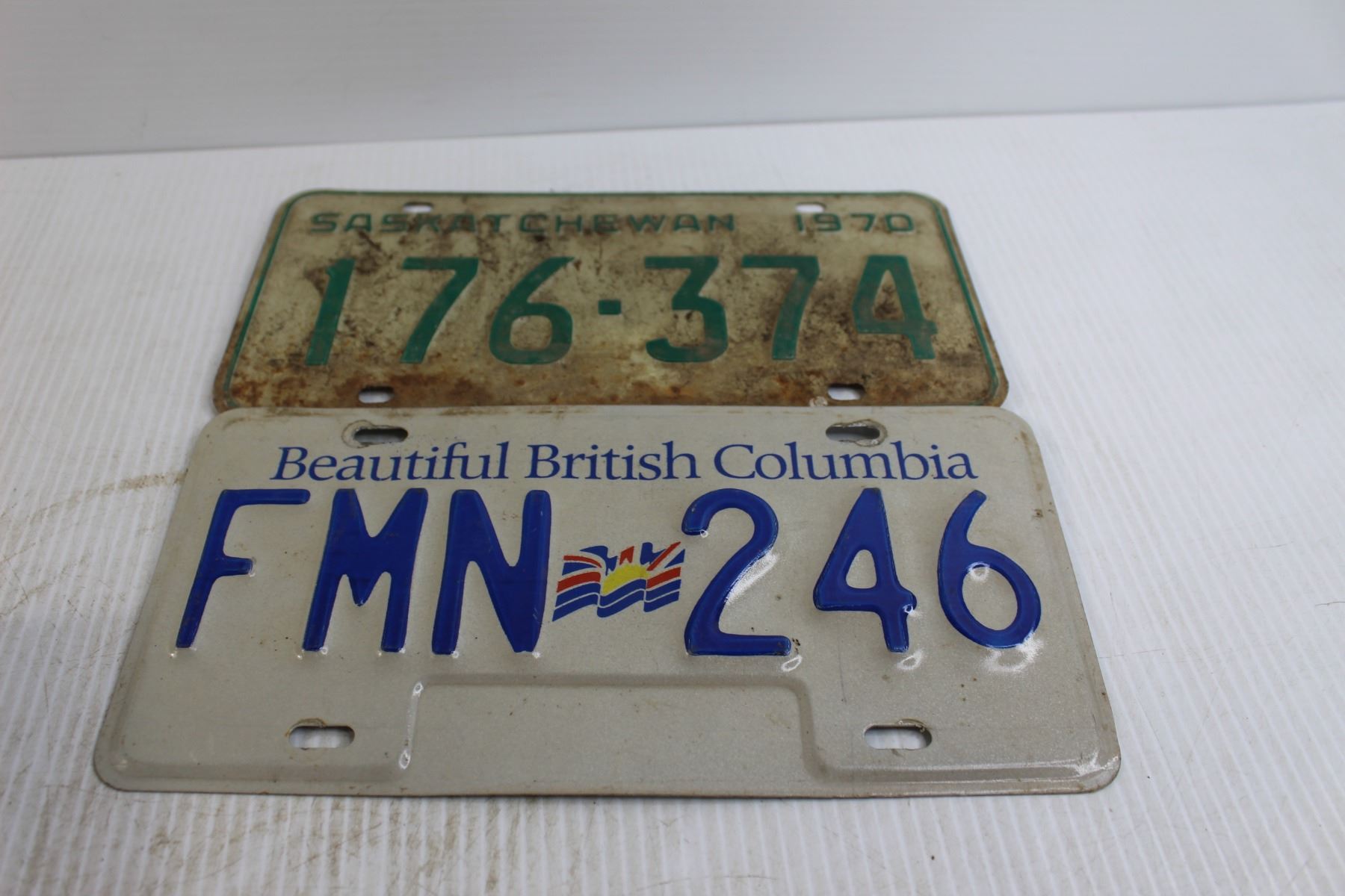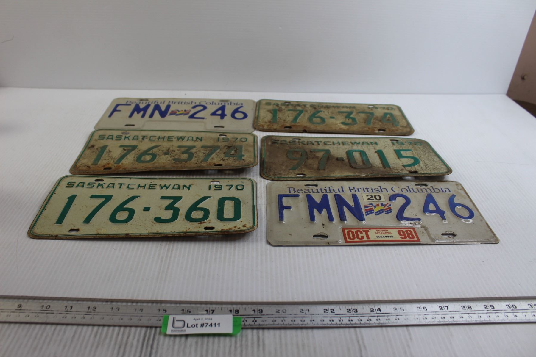 (2) British Columbia License Plates, (4) Saskatchewan License Plates