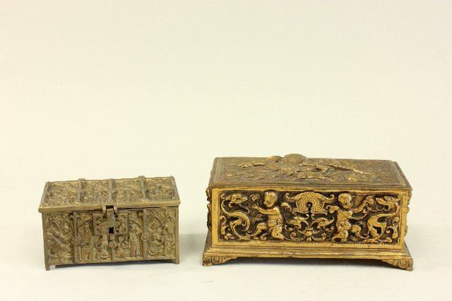 One with hunt scene, approx. 3 1/2" H x 8 1/8" W x  4" D. One with gothic scene, approx. 2 3/4" H x 5  1/2" W x 3 1/2" D. (4165)