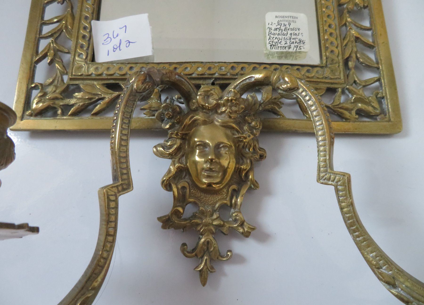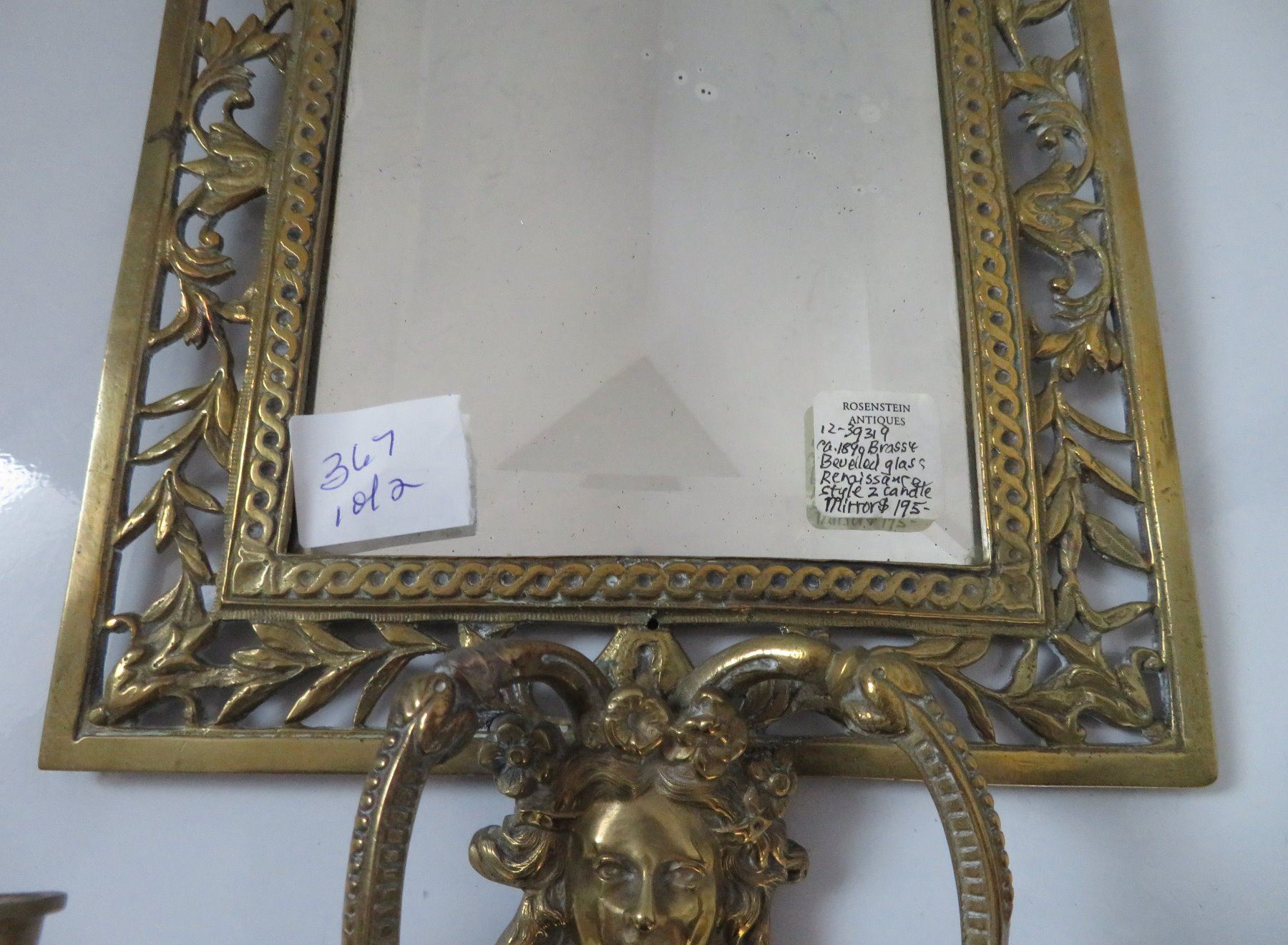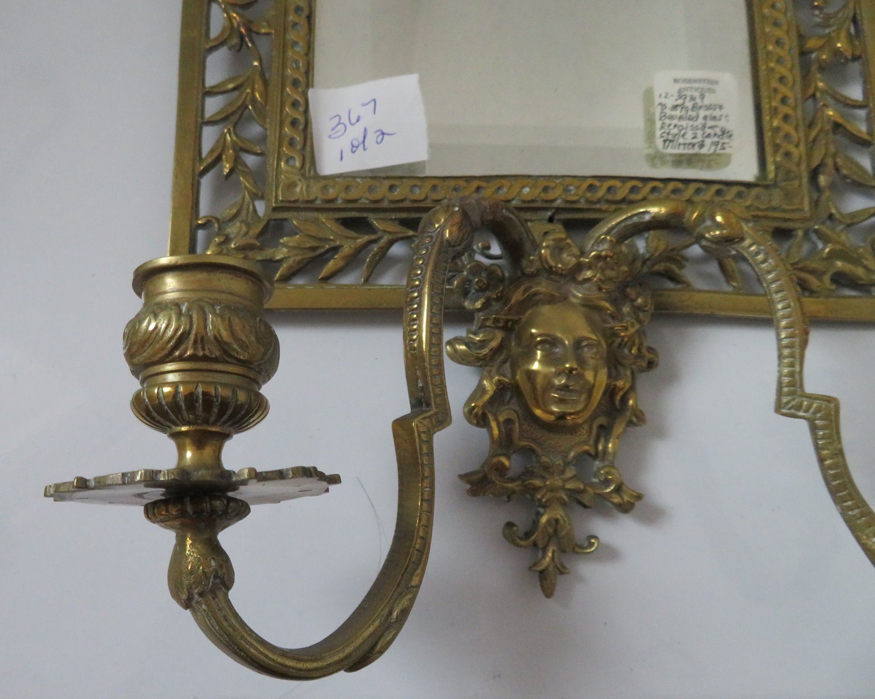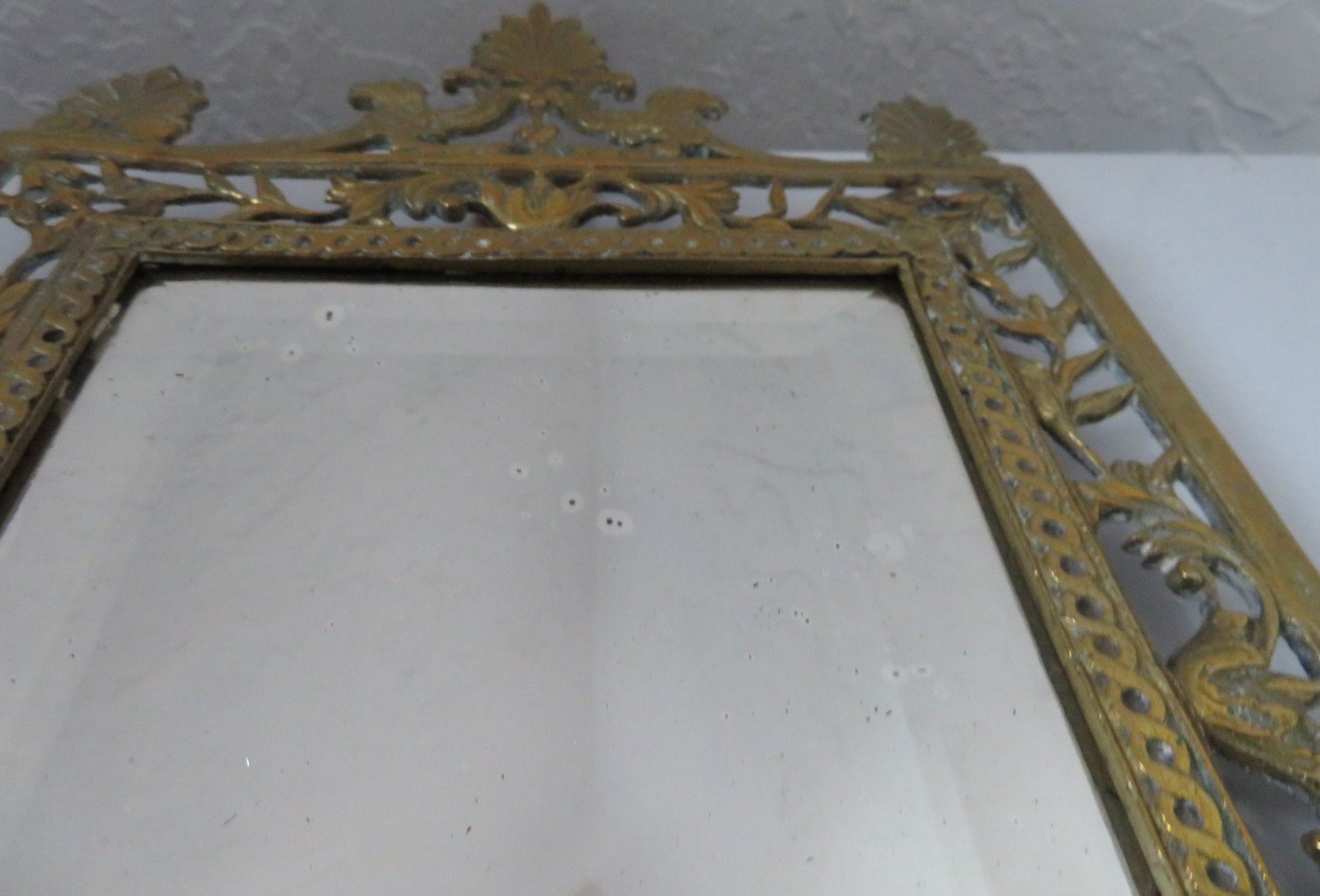 2 Bronze Mirrors, c. 1890s and later. Made of bronze and beveled glass, the items measure 8 1/4" x 16 1/2" x 4 1/2", and 11 15/16" x 3/4". European. Nice bronze, candlestick holder with beveled glass mirror. Condition: Glass is pitted on one, nice patina, see images. Shipping: $50.00 USA estimate only, double-boxed, due to heavy weight and value.