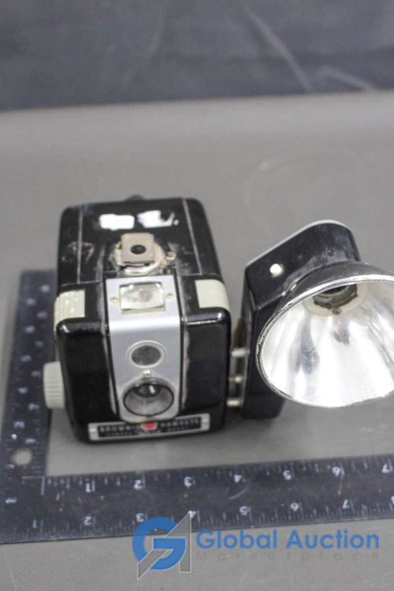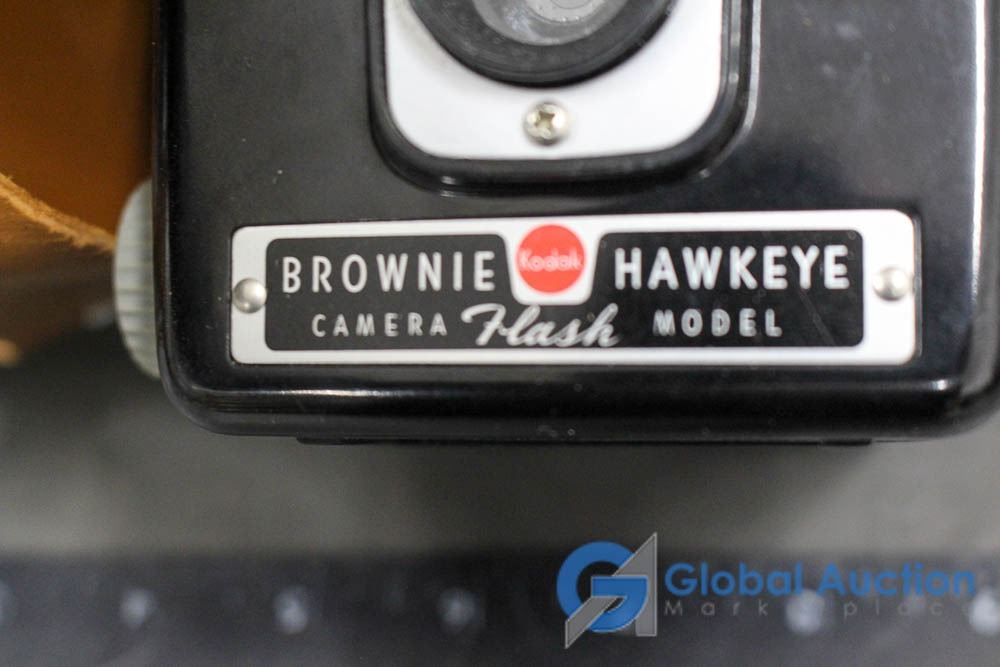 (2) Brownie Hawkeye Kodak Cameras and (1) Leather Case