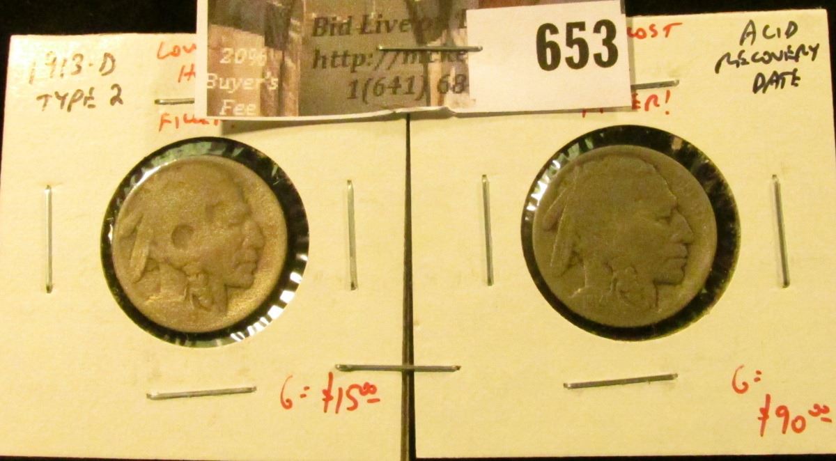 (2) Buffalo Nickels – 1913-D type 2 & 1914-D, both ARD (acid recovery date), potentially a low cost