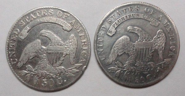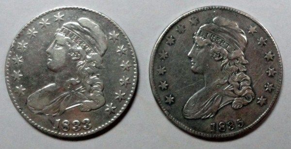 2 Bust Half, 1833 VF/XF (cleaned), 1835 XF details (lt scrs)
