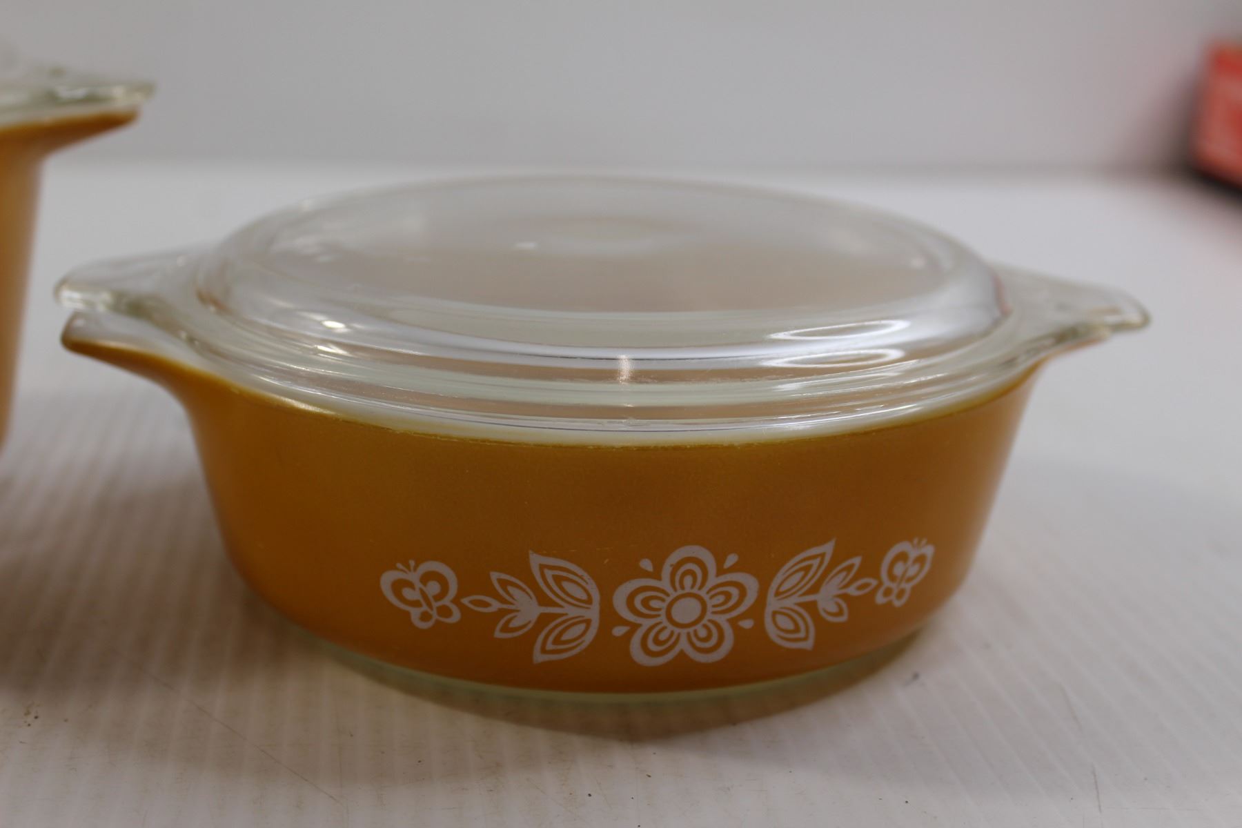 (2) Butterfly Gold Pyrex Dishes - Some Chips