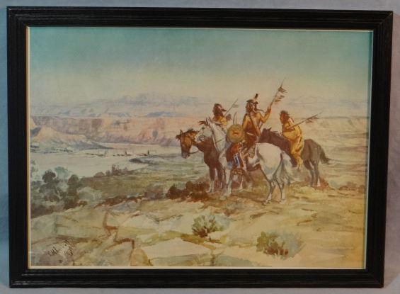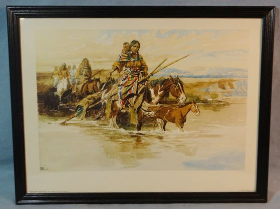 2 C. M. Russell prints, Squaw Travois and Wagons Westward, 9" x 14" each, framed