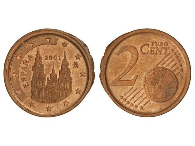 2 Céntimos de Euro. 2.001. ERROR: Exceso de cobre en el canto. RARA. MBC+.