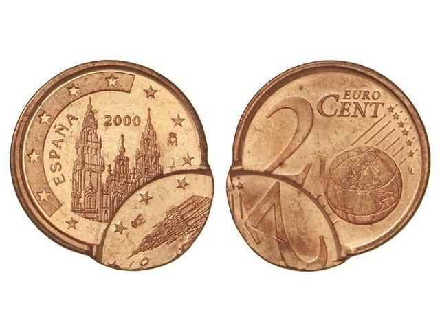 2 Céntimos de Euro. 2000. Acuñación doble, una desplazada. SC.