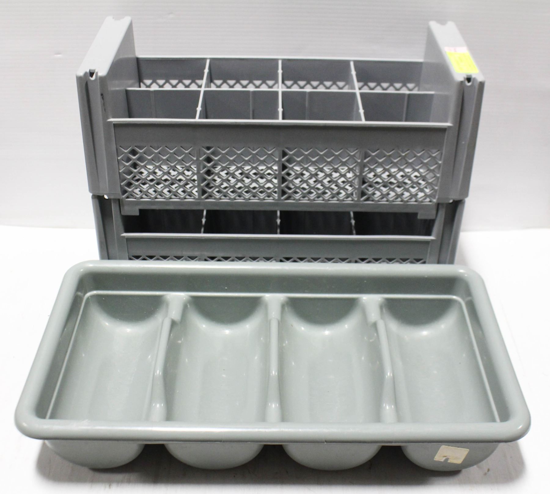 2 CAMBRO CUTLERY TRAYS W/ 4 COMPARTMENT BUS BOX