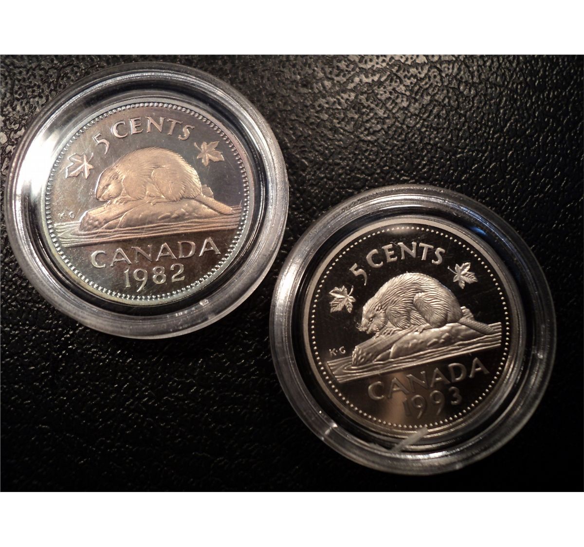 2 CAMEO PROOF NICKELS SOLD TOGETHER (1993, 1982)