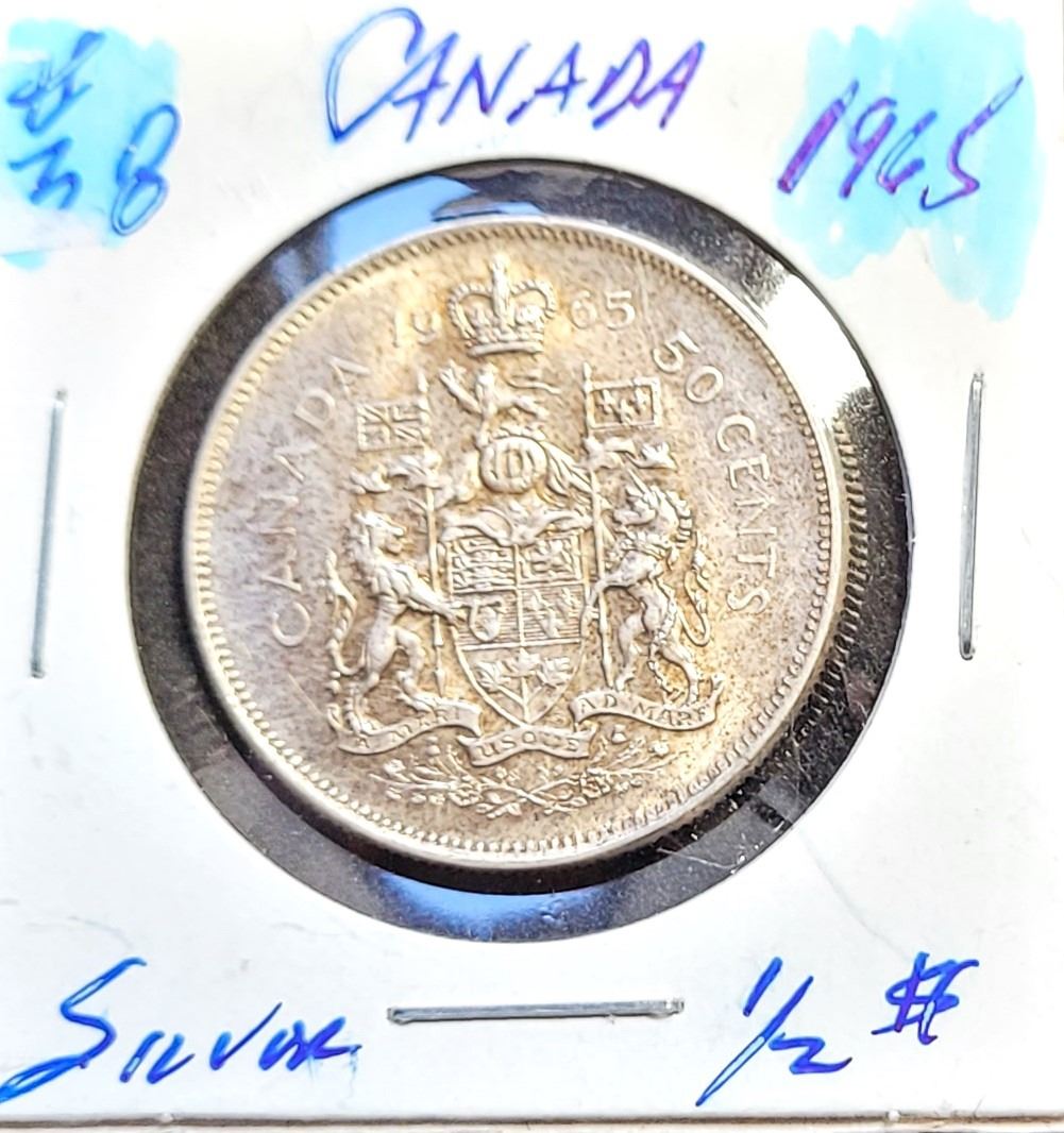 2) CANADA 1965 80% SILVER HALF DOLLAR.