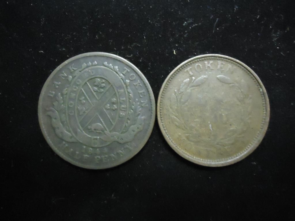 1844 PROVINCE OF CANADA HALF PENNY AND MONTREAL TOKEN