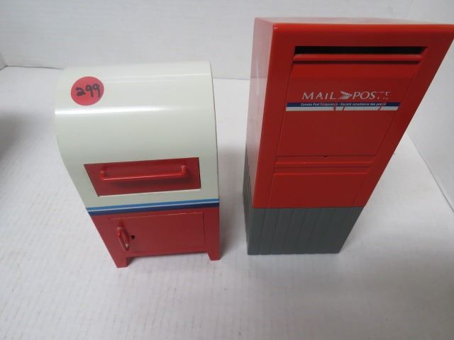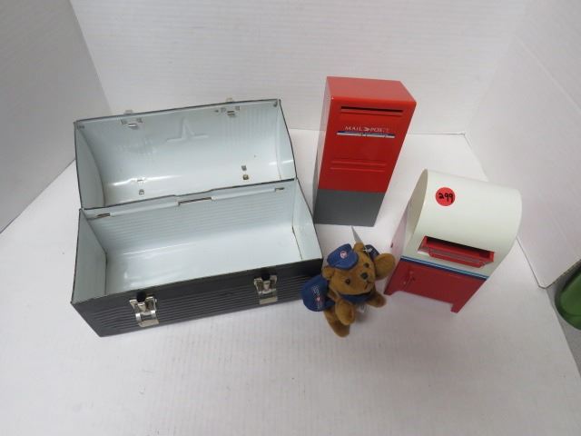2 CANADA POST MAIL BOX BANKS, PLUSH POSTAL BEAR, LUNCH PAIL