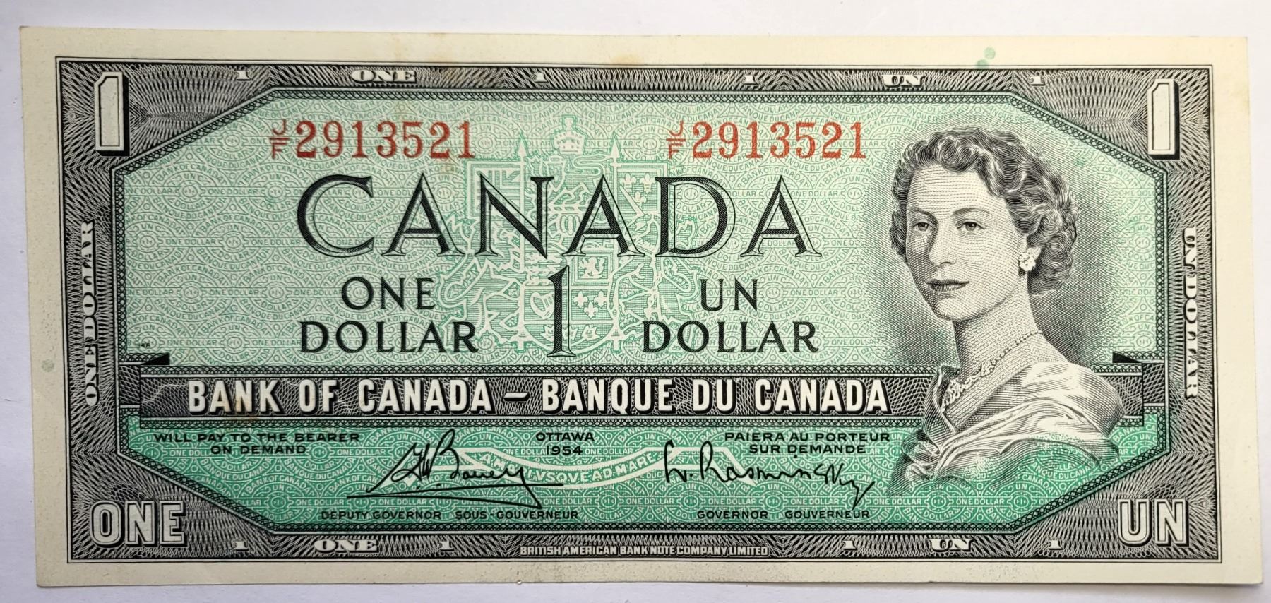 2) CANADIAN 1954 $1.00 BANKNOTE