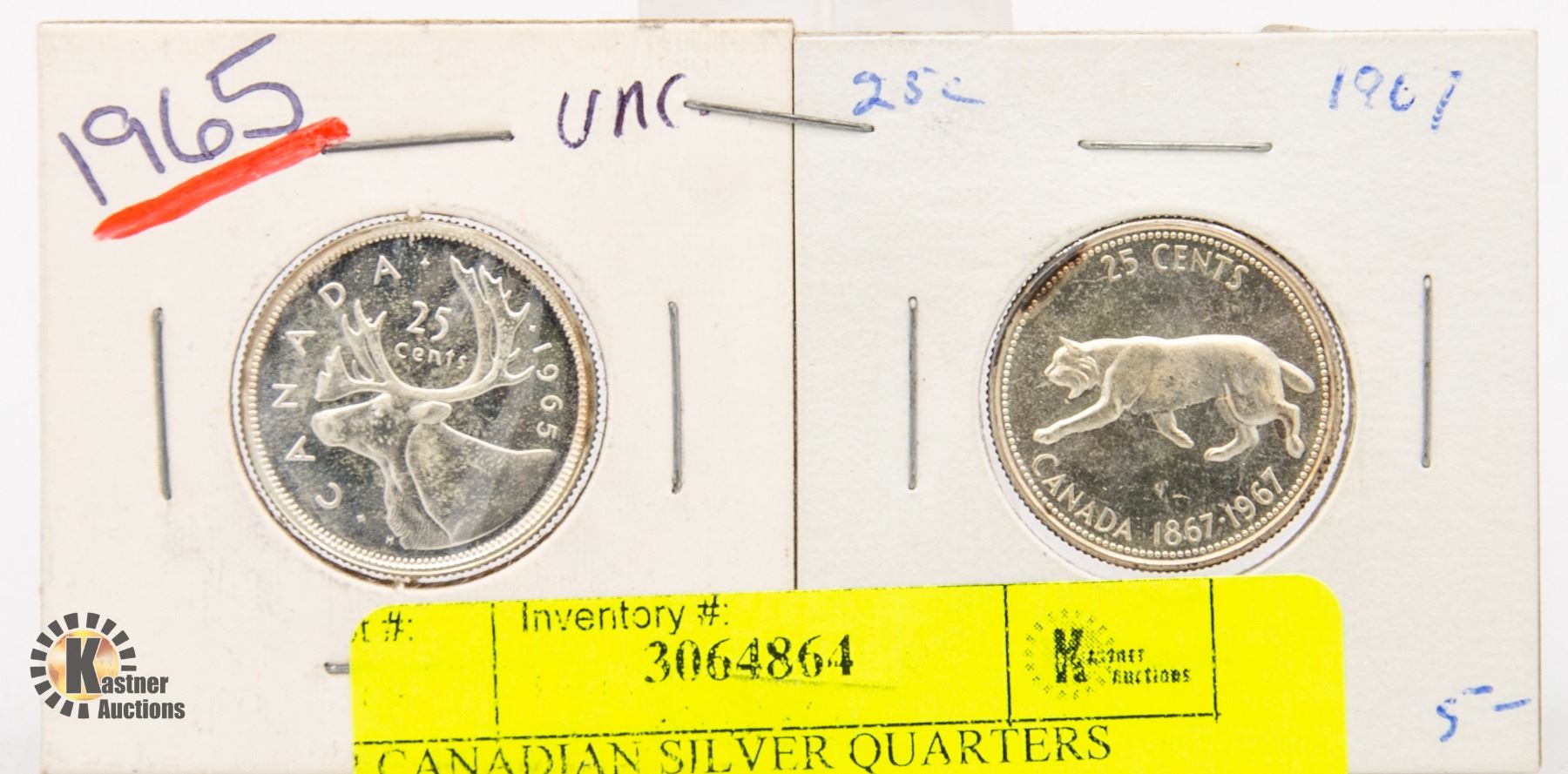 2 CANADIAN SILVER QUARTERS 1965-1967