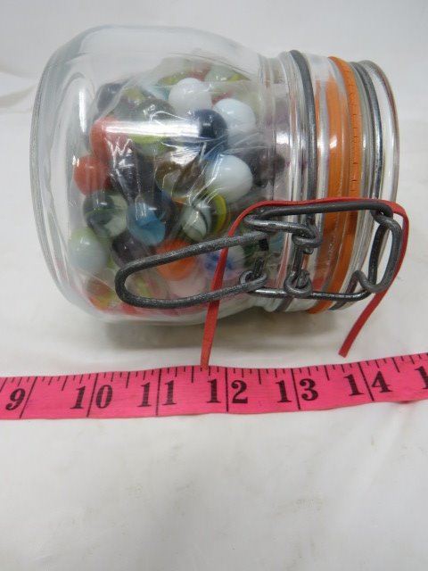 2 CANNING JARS FULL OF MARBLES