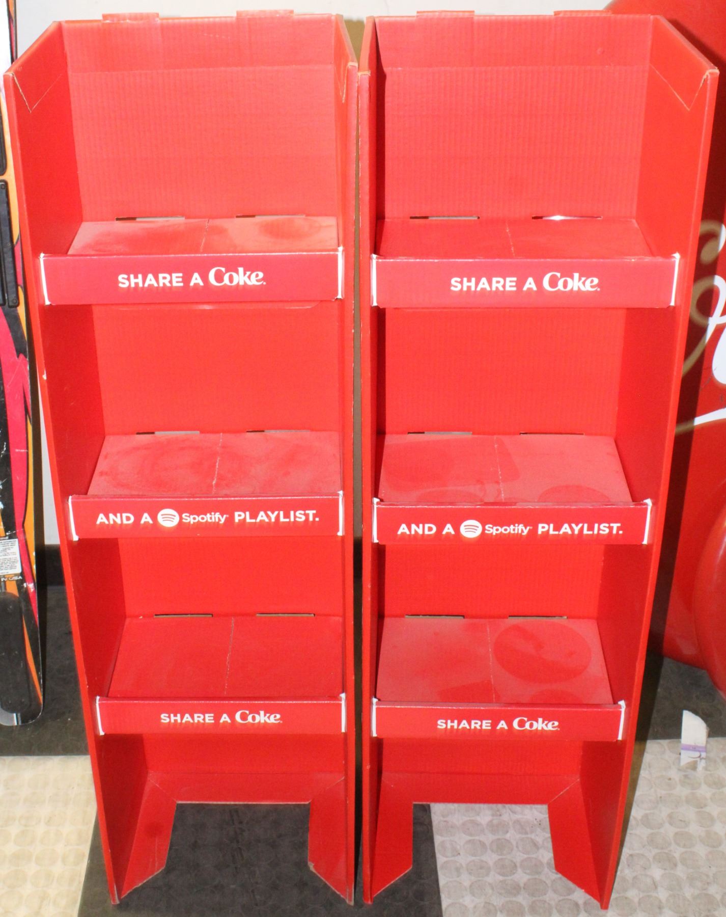2 CARDBOARD COCA COLA RETAIL STANDS 13" X 16" X 44