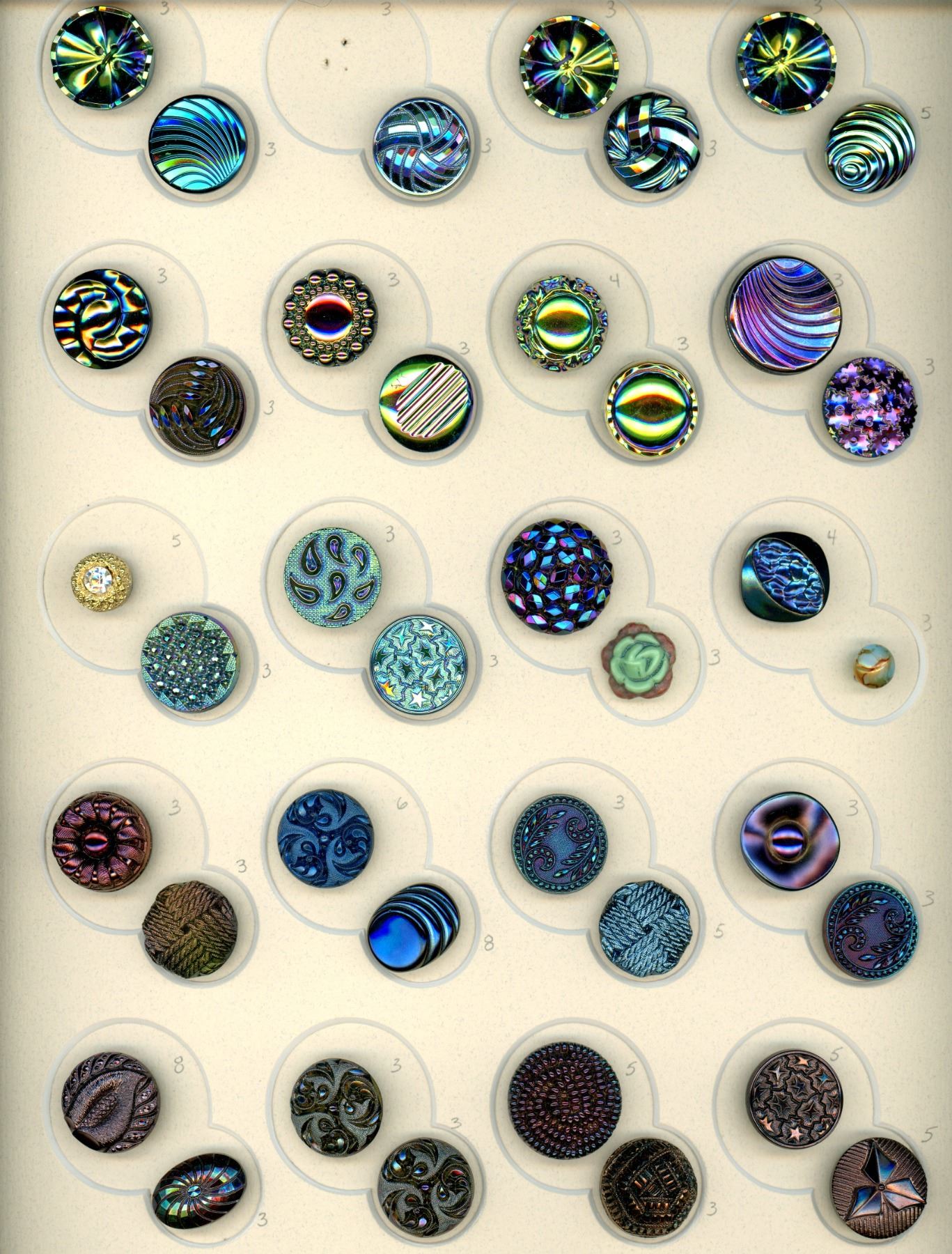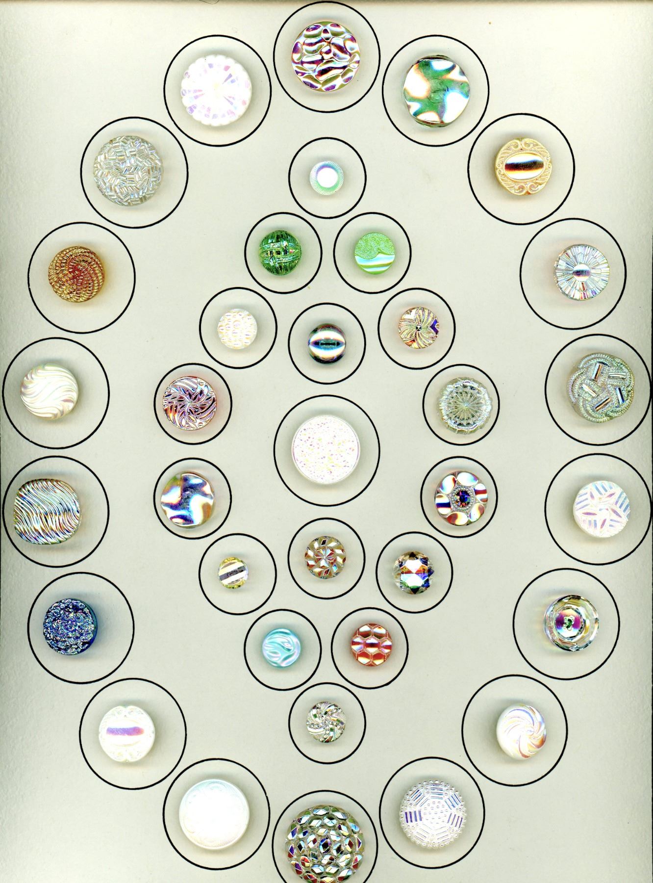 ConditionPLEASE NOTE: These buttons for the most part are antique and may have age related wear. We make every effort to point out any significant condition related concerns, but again they are antique and not new. We also cannot be responsible for replaced shanks or issues related to the backs of any buttons on multiple button cards as we do not remove these buttons to re-card them. Please contact us if you would like any further condition reports on any lot.