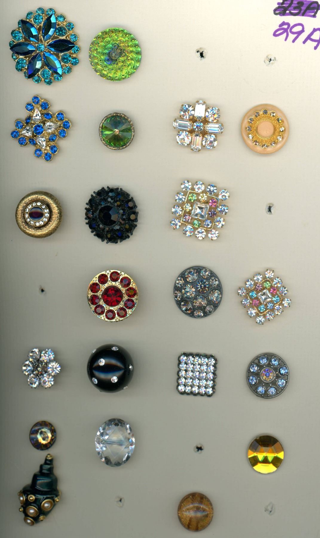 35 S/M/L Mid 20th century colorful paste jewel examples.