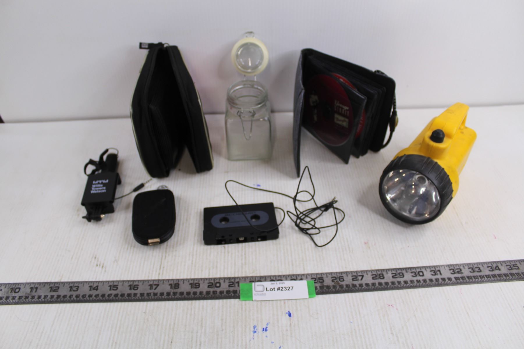 (2) CD Carrying Cases (12 CD's Included), Selfie Stick, Rayovac Flash Light - Working, Misc.