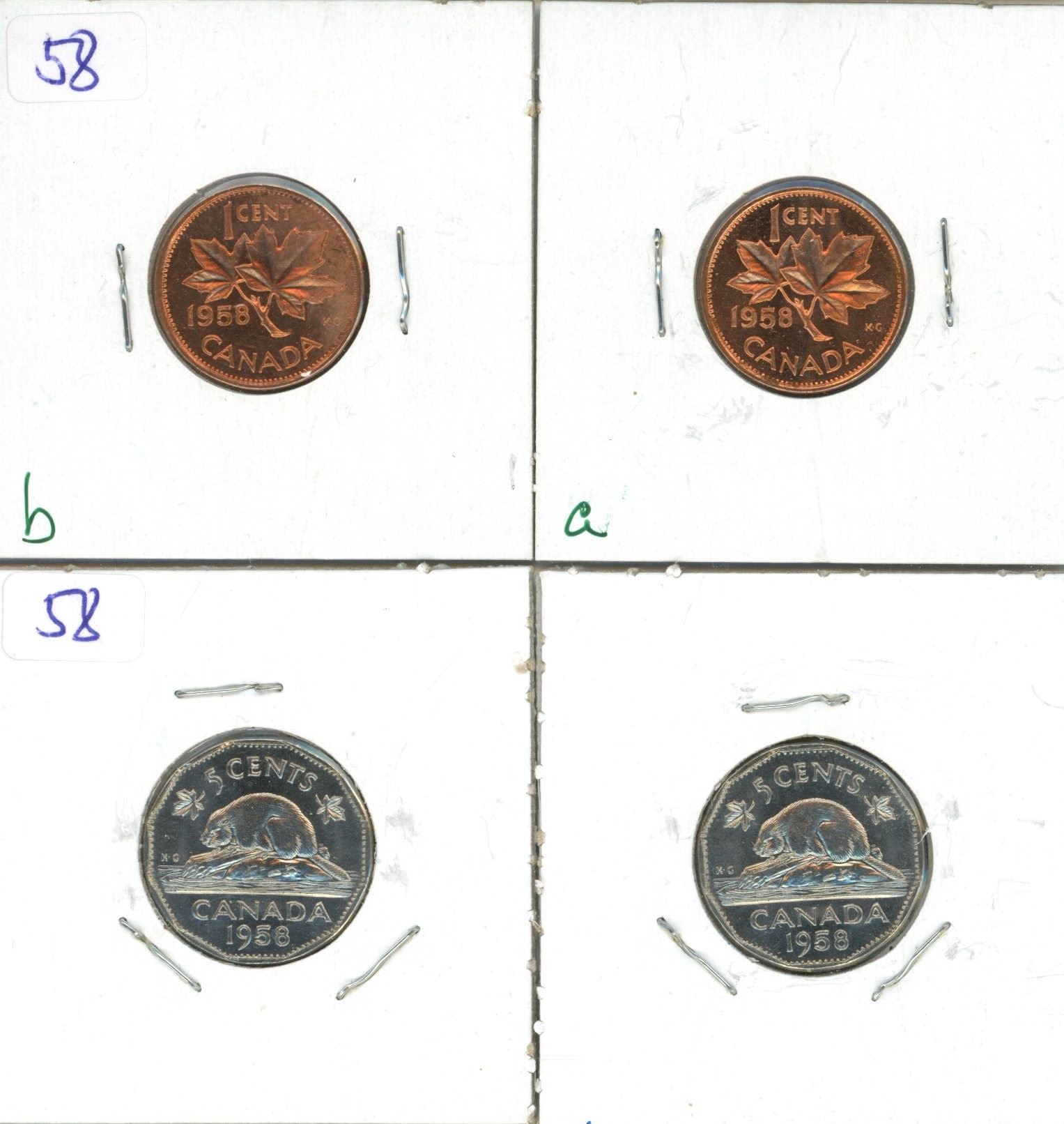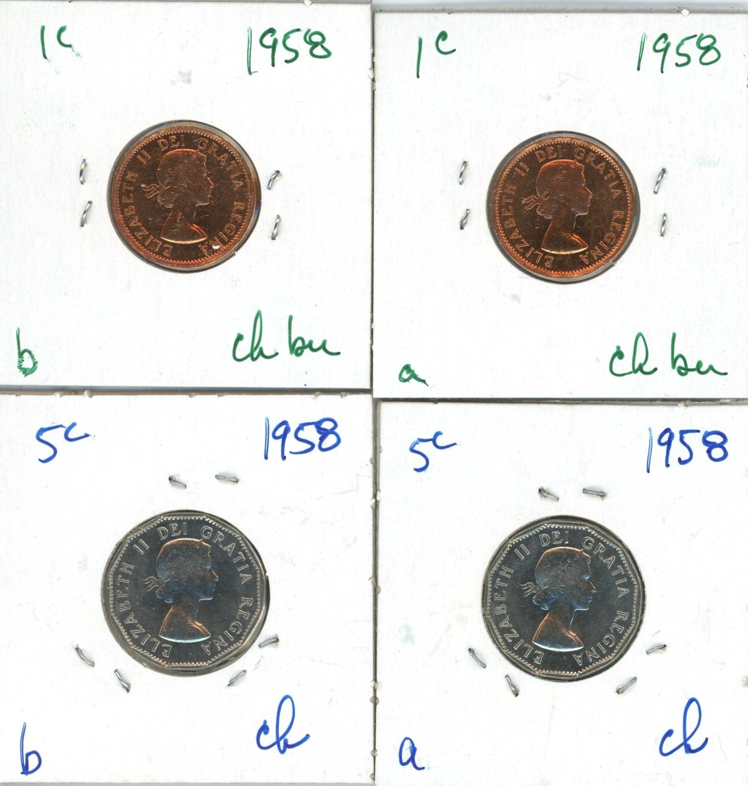 2 - CDN CH BU 1958 Nickels, 2 CH BU 1958 Cents