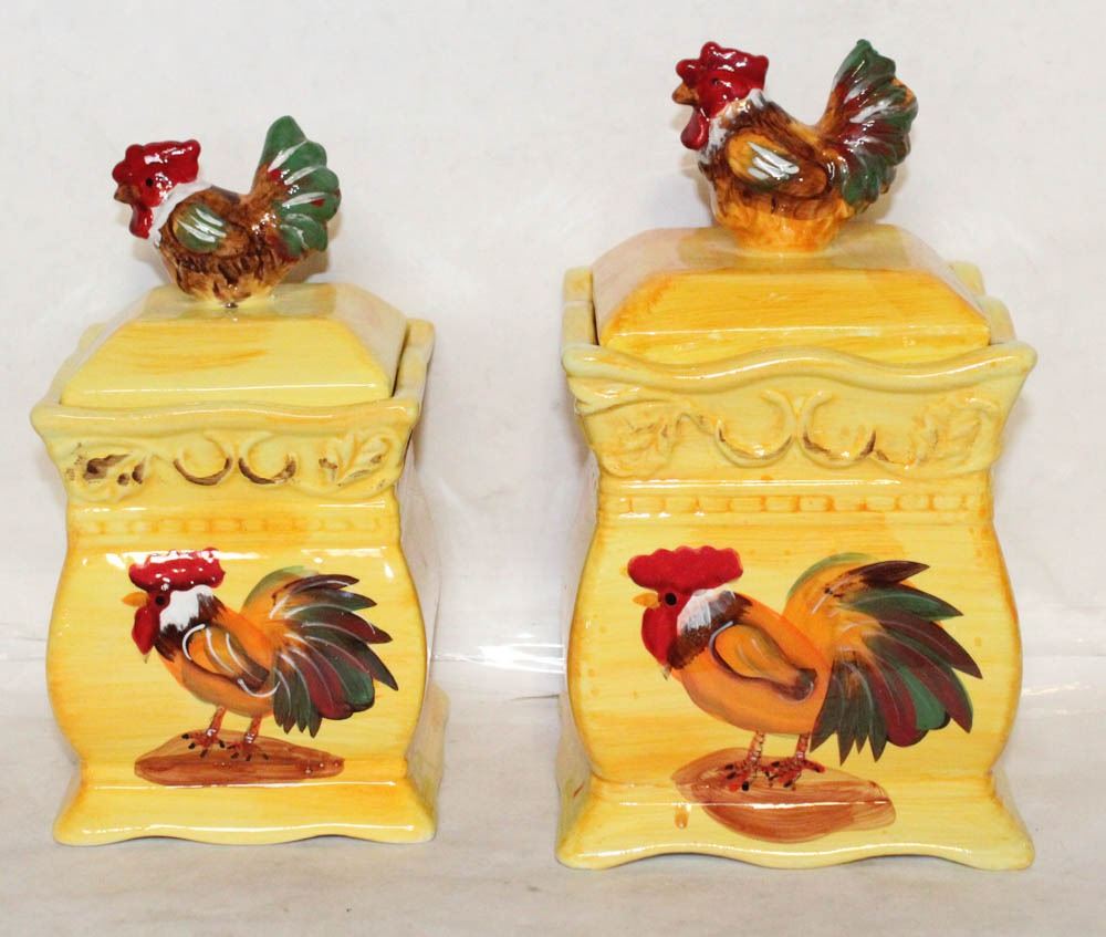 2 CERAMIC LIDDED ROOSTER CANNISTERS