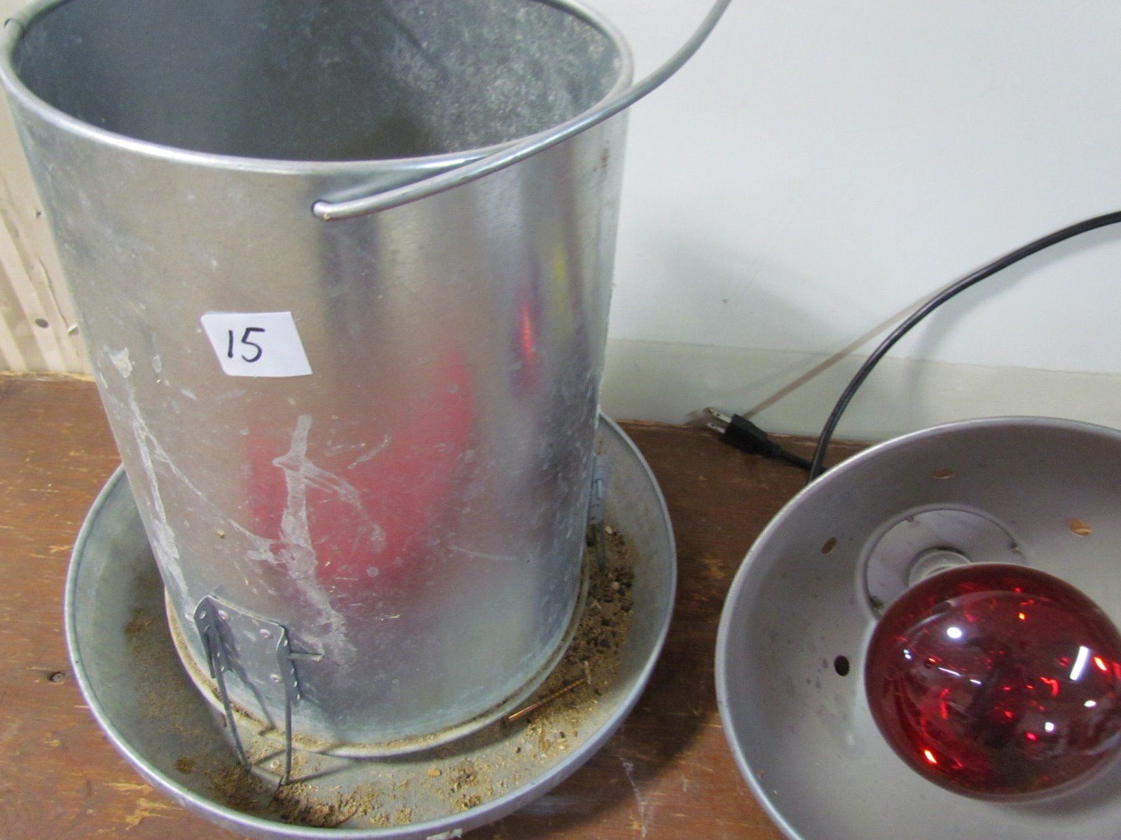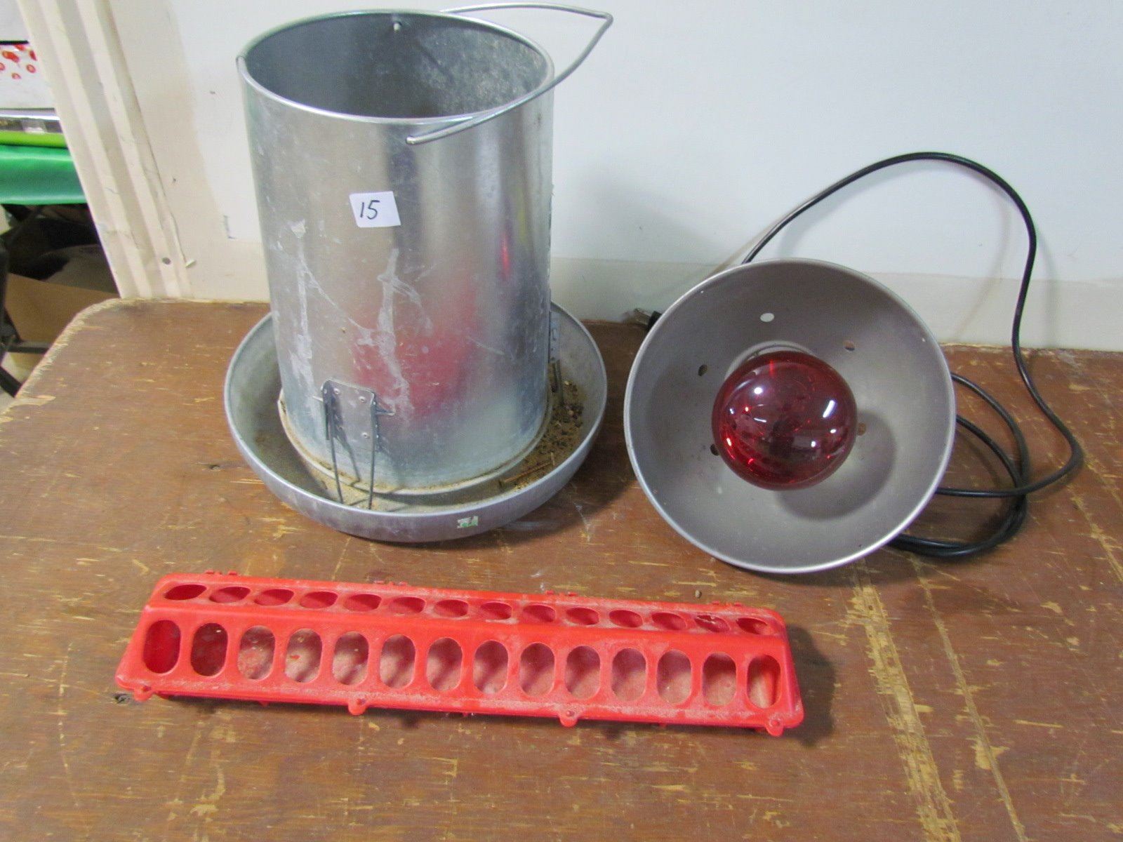 2 CHICKEN FEEDERS & HEAT LAMPS