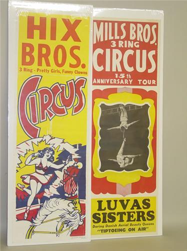 (2) CIRCUS POSTERS: (1) HIX BROS. CIRCUS-3 RING, PRETTY GIRLS & FUNNY CLOWNS & (1) MILLS BROS. 3 RING CIRCUS FEATURING THE LUVAS SISTERS