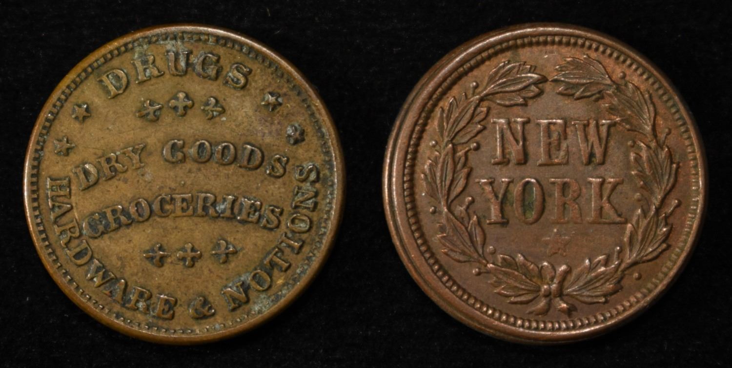 2 CIVIL WAR TOKENS NEW YORK, DRY GOODS
